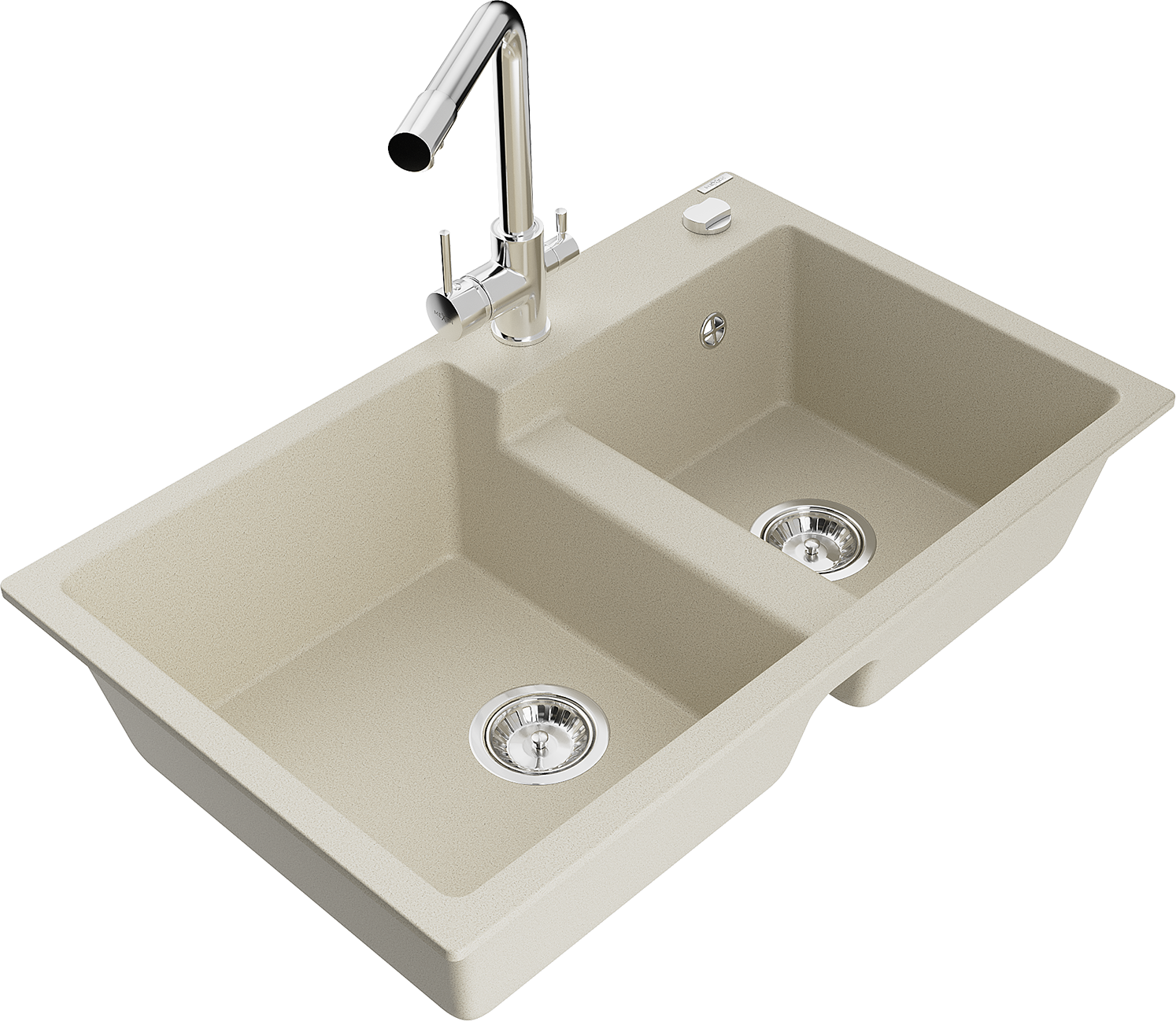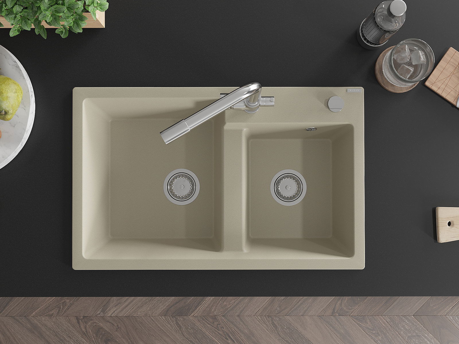 Mexen Tomas granito virtuvės plautuvė su maišytuvu Duero, smėlio - 6516-69-671600-00