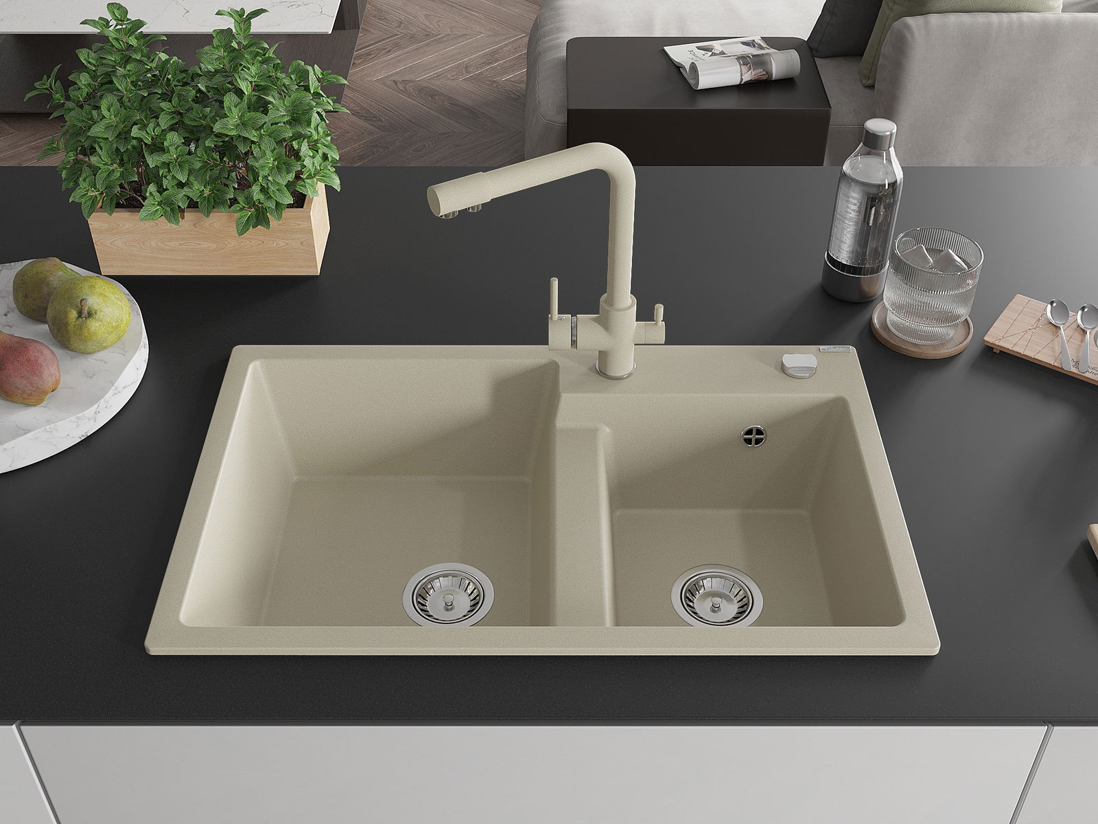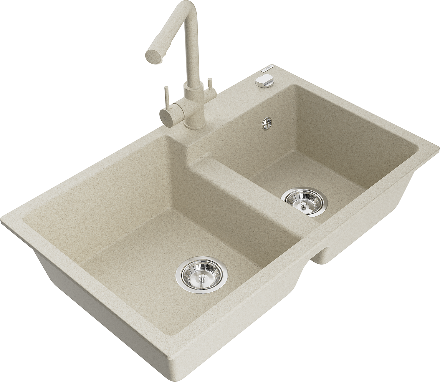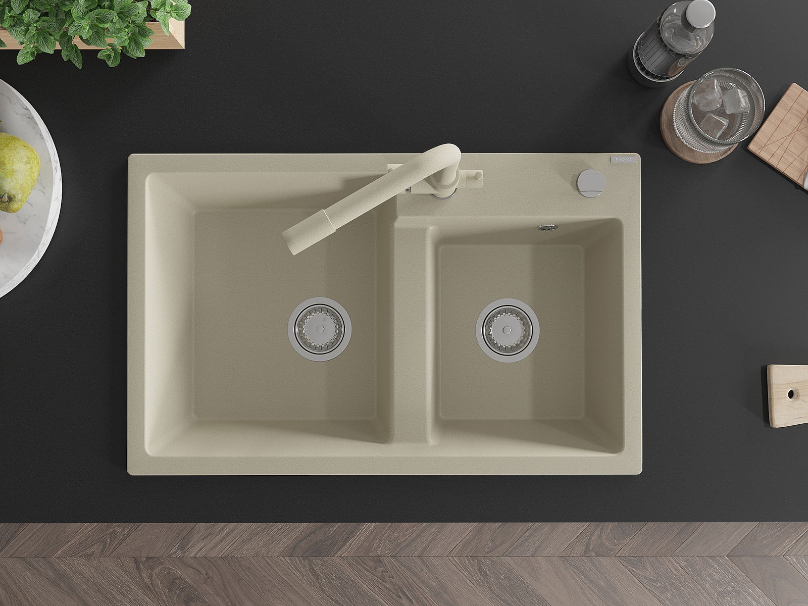 Mexen Tomas granitinė virtuvinė kriauklė su Duero virtuviniu maišytuvu, smėlio spalvos - 6516-69-671600-69