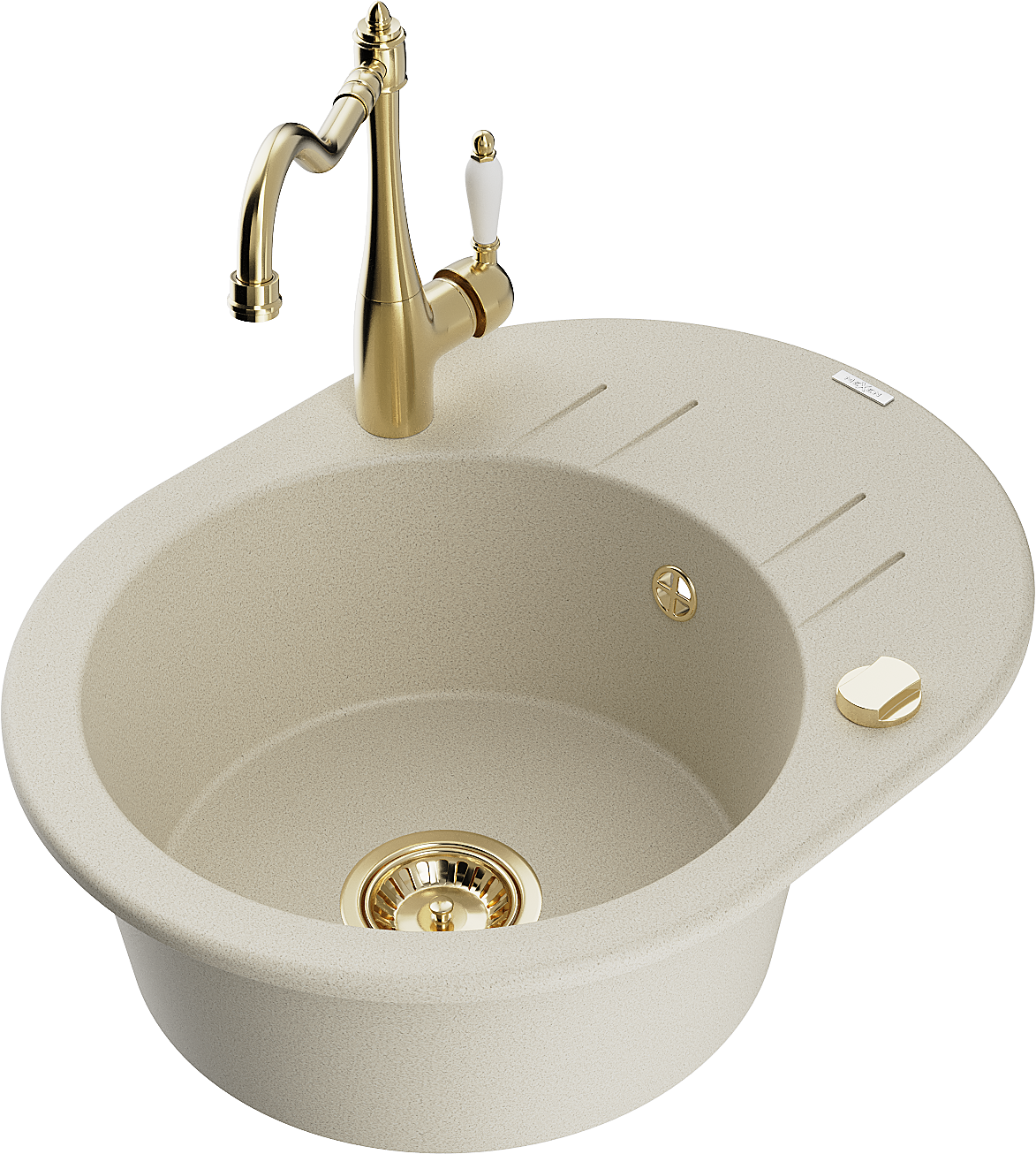Mexen Kevin granitinė vienos kameros kriauklė su nusausintuvu ir virtuviniu maišytuvu Carla, smėlinė - 6517-69-670700-50