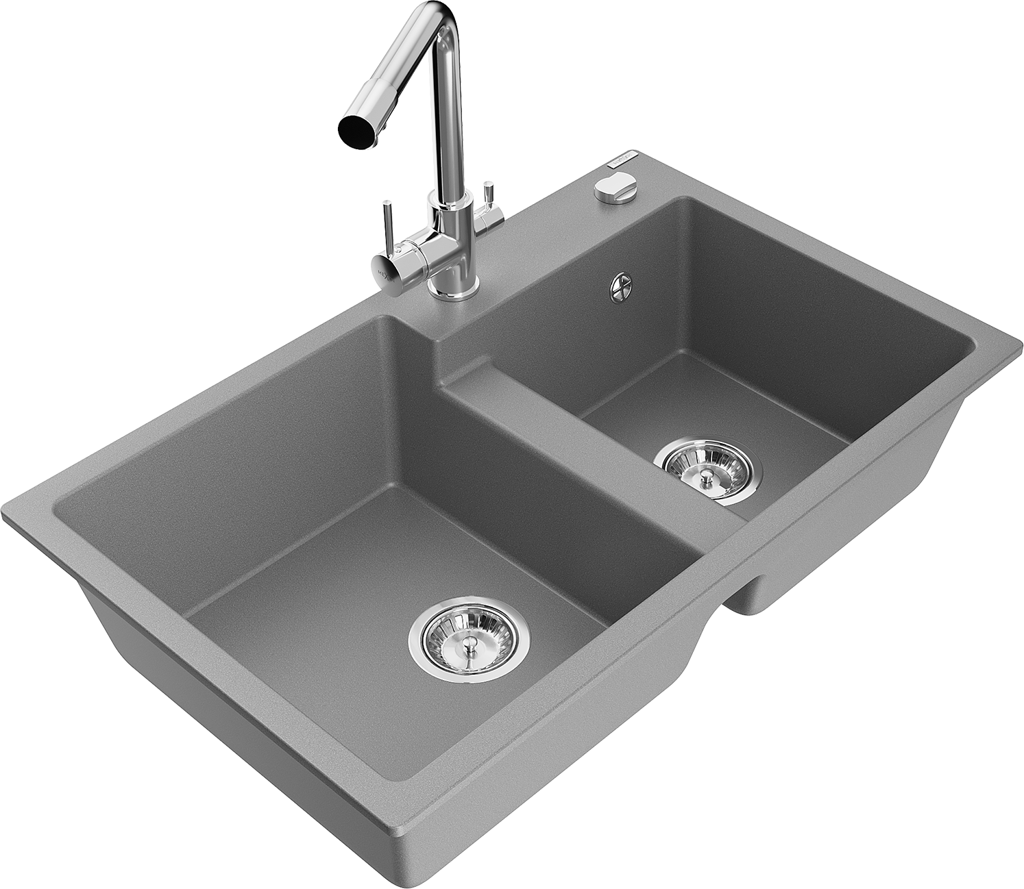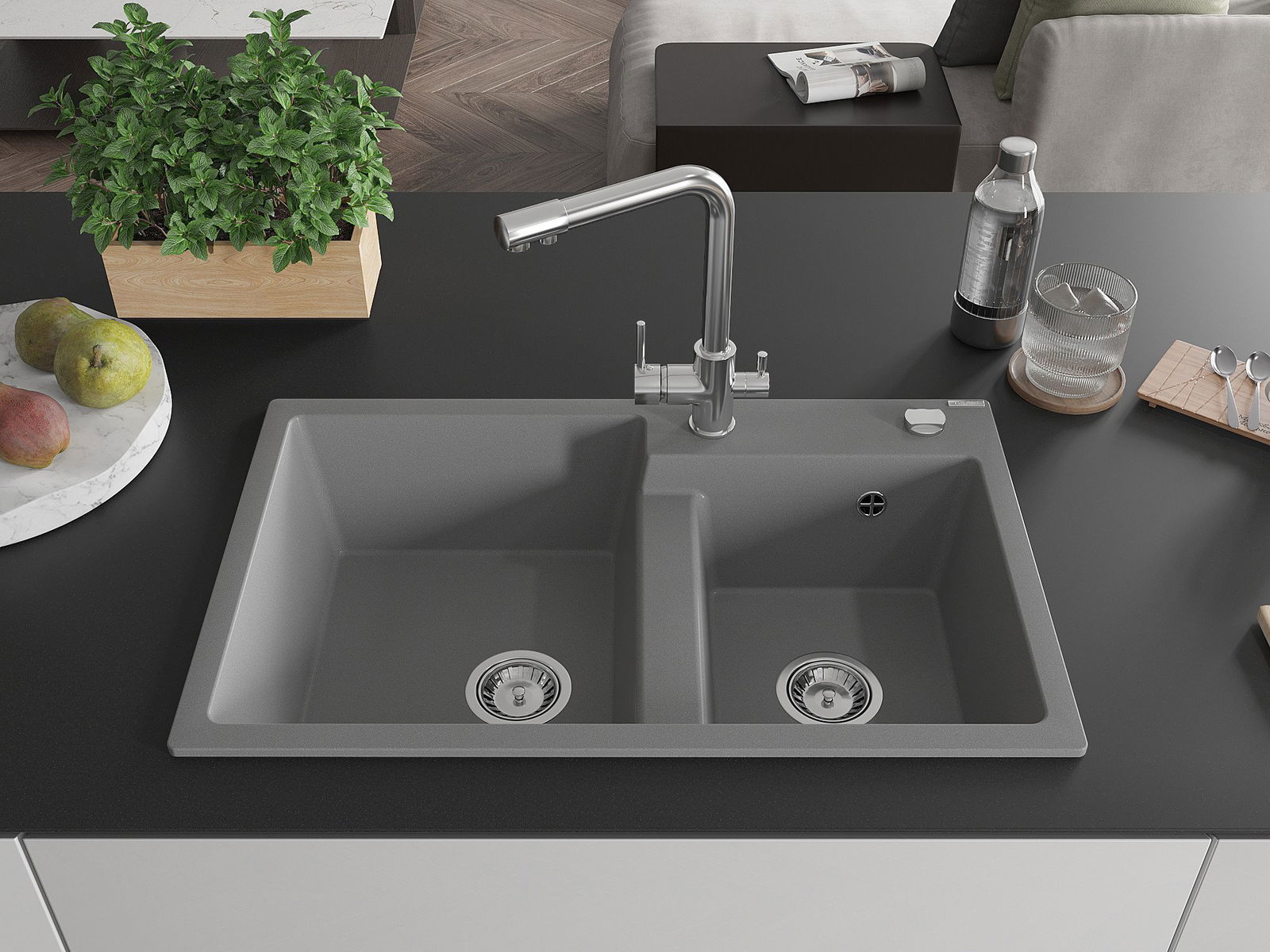 Mexen Tomas dviejų kamerų granito plautuvė su Duero virtuviniu maišytuvu, pilka - 6516-71-671600-00
