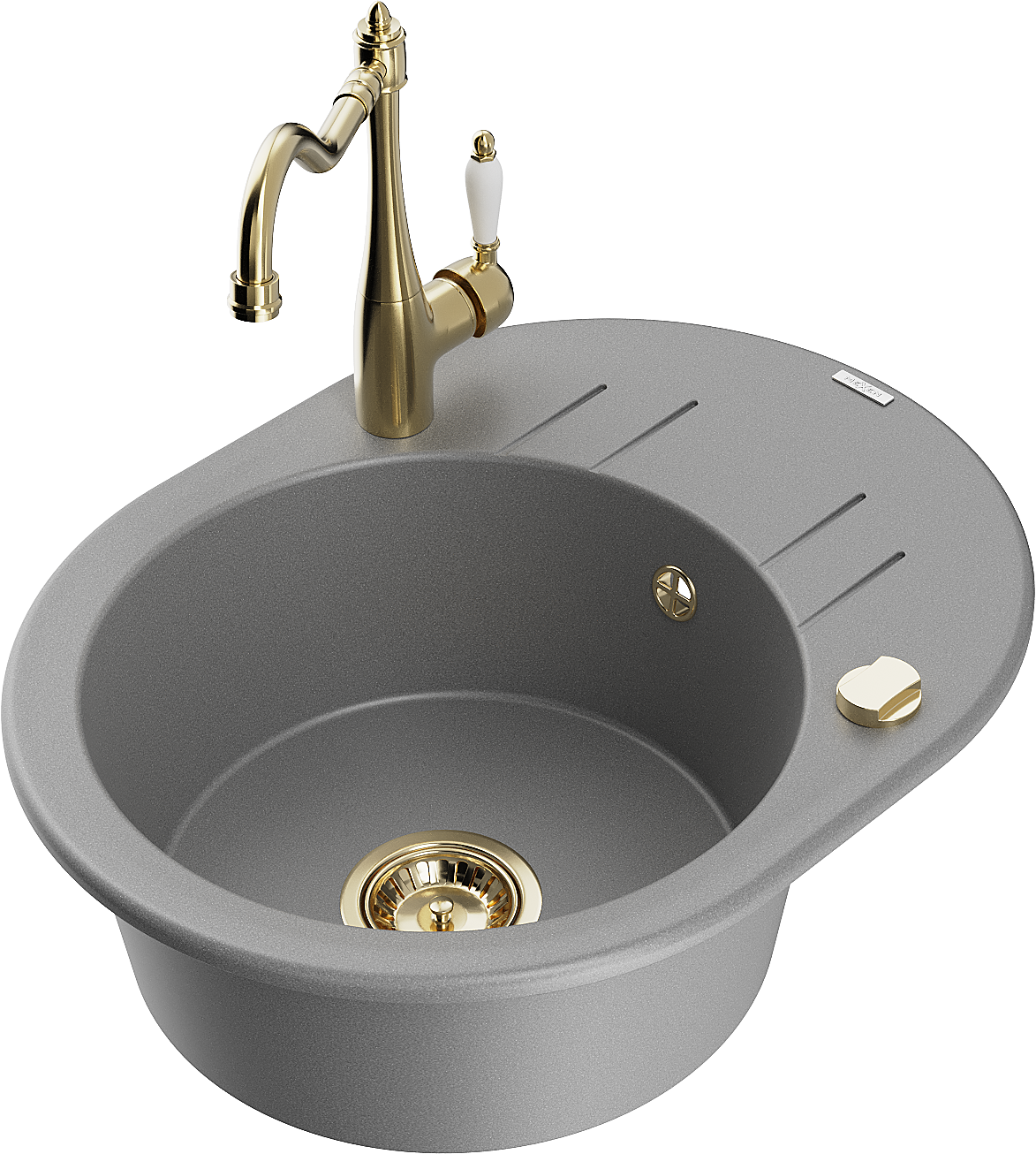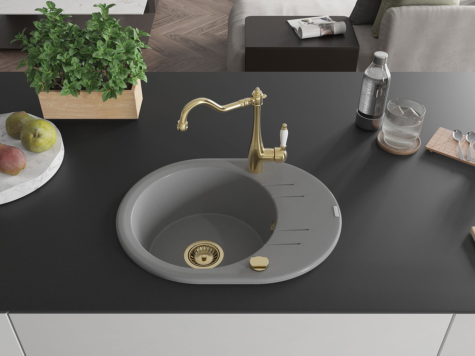 Mexen Kevin granitinė vienos sekcijos kriauklė su nusausintuvu ir virtuviniu maišytuvu Carla, pilka - 6517-71-670700-50