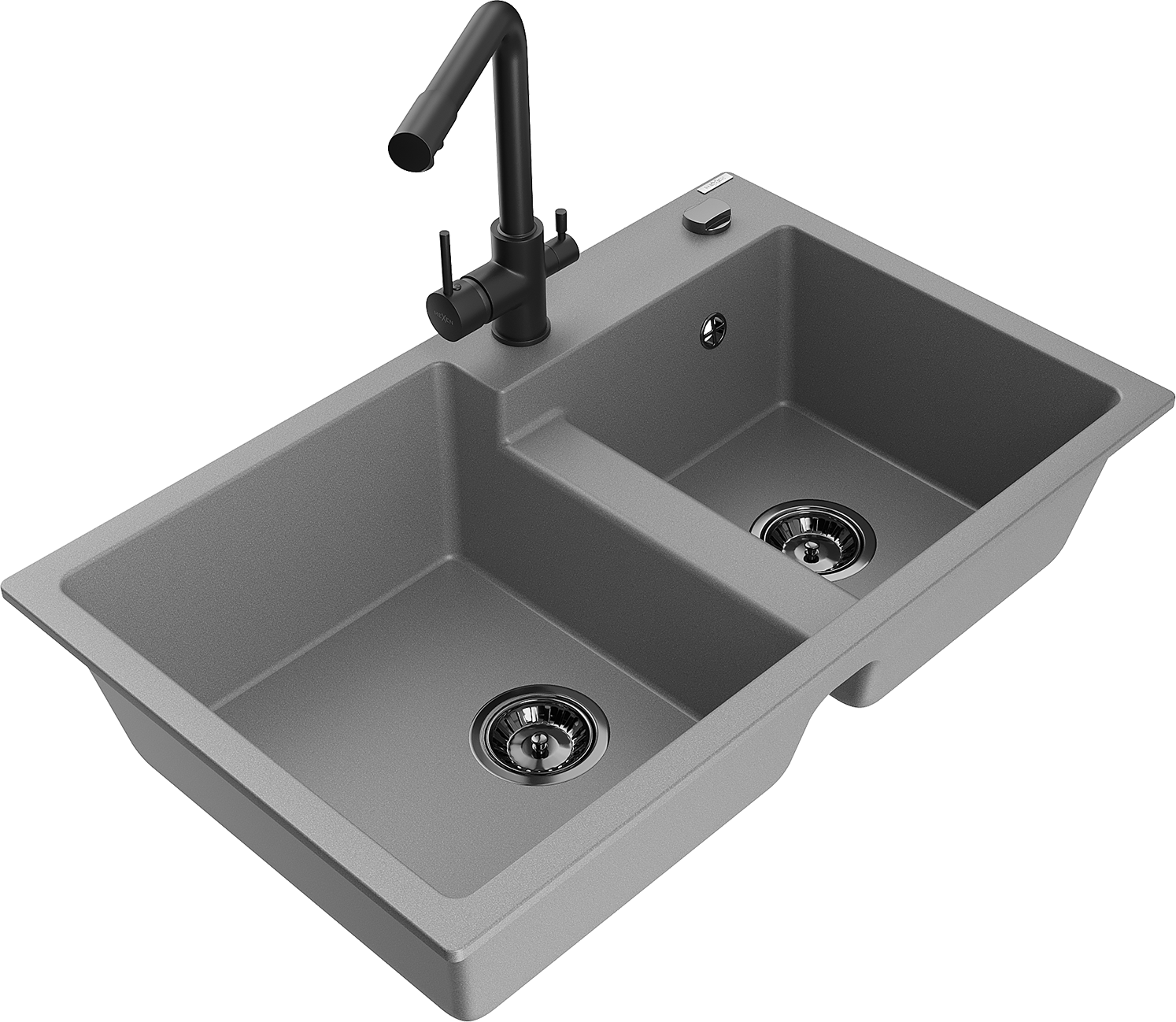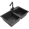 Mexen Tomas granitinis dviejų skyrių virtuvės plautuvė su virtuviniu maišytuvu Duero, pilkas - 6516-71-671600-70-B