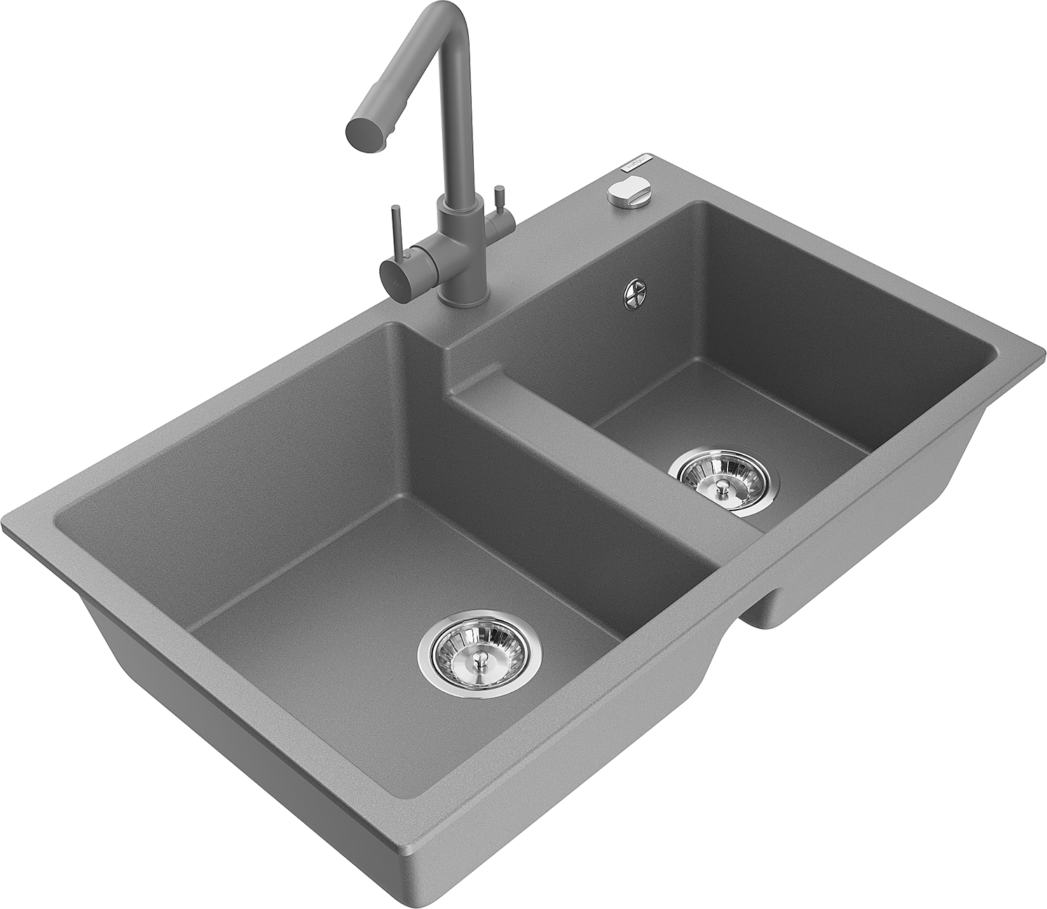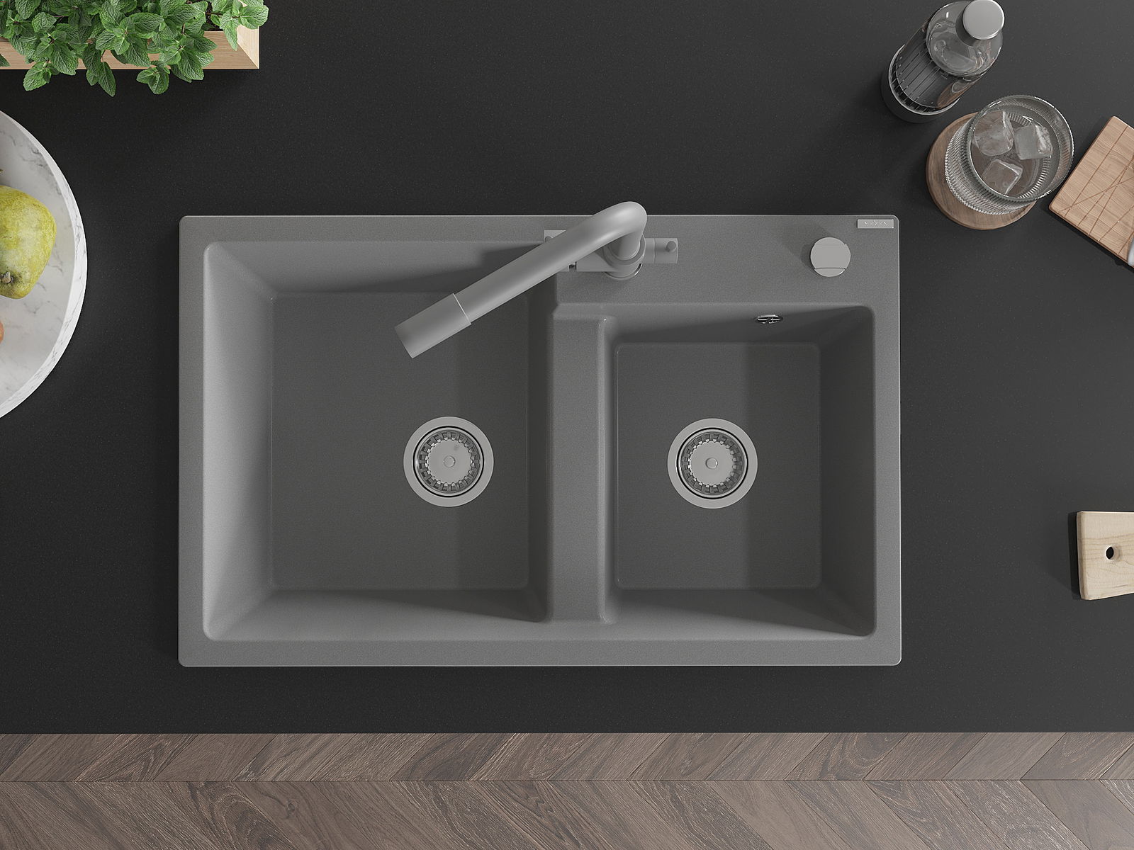 Mexen Tomas granito plautuvė dviejų skyrių su Duero virtuviniu maišytuvu, pilka - 6516-71-671600-71