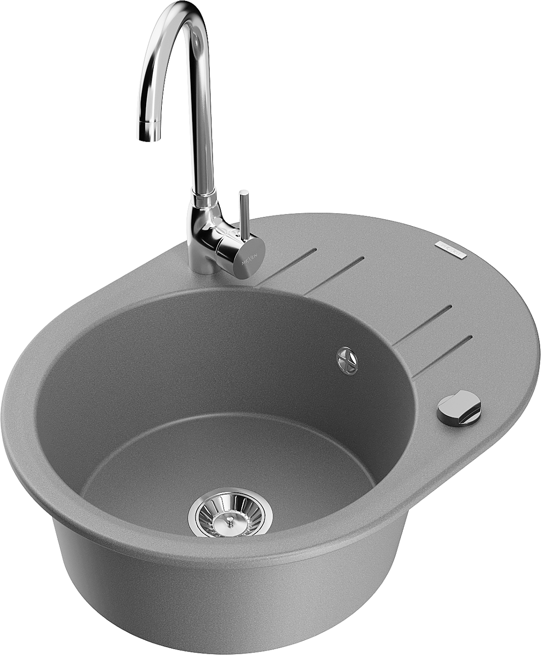 Mexen Kevin granitinis vienos kameros plautuvė su nusausintuvu ir virtuviniu maišytuvu Telma, pilka - 6517-71-670200-00