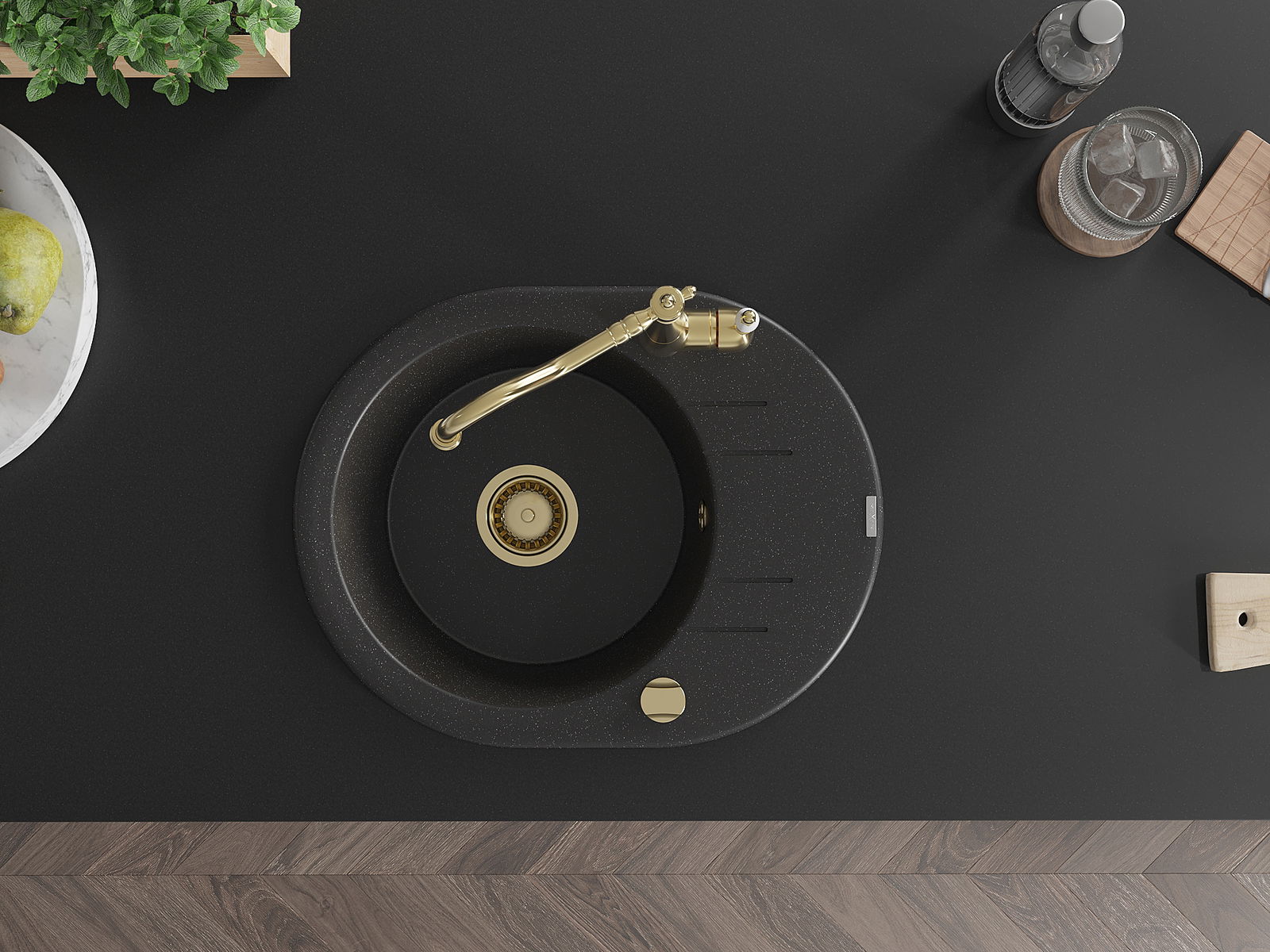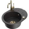 Mexen Kevin granitinė vienos kameros plautuvė su nutekėjimu ir virtuves maišytuvu "Carla", juoda/sidabrinis metalikas