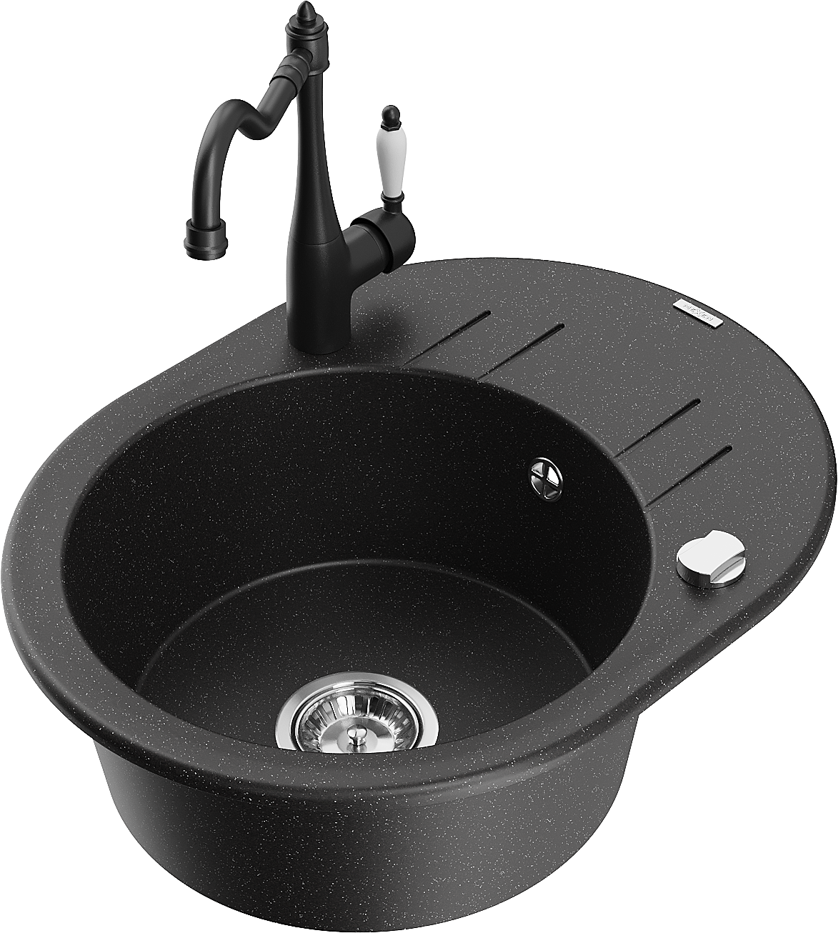 Mexen Kevin granitinė vienos kameros kriauklė su nusausintuvu ir virtuviniu maišytuvu Carla, juoda/sidabrinis metalikas - 6517-?