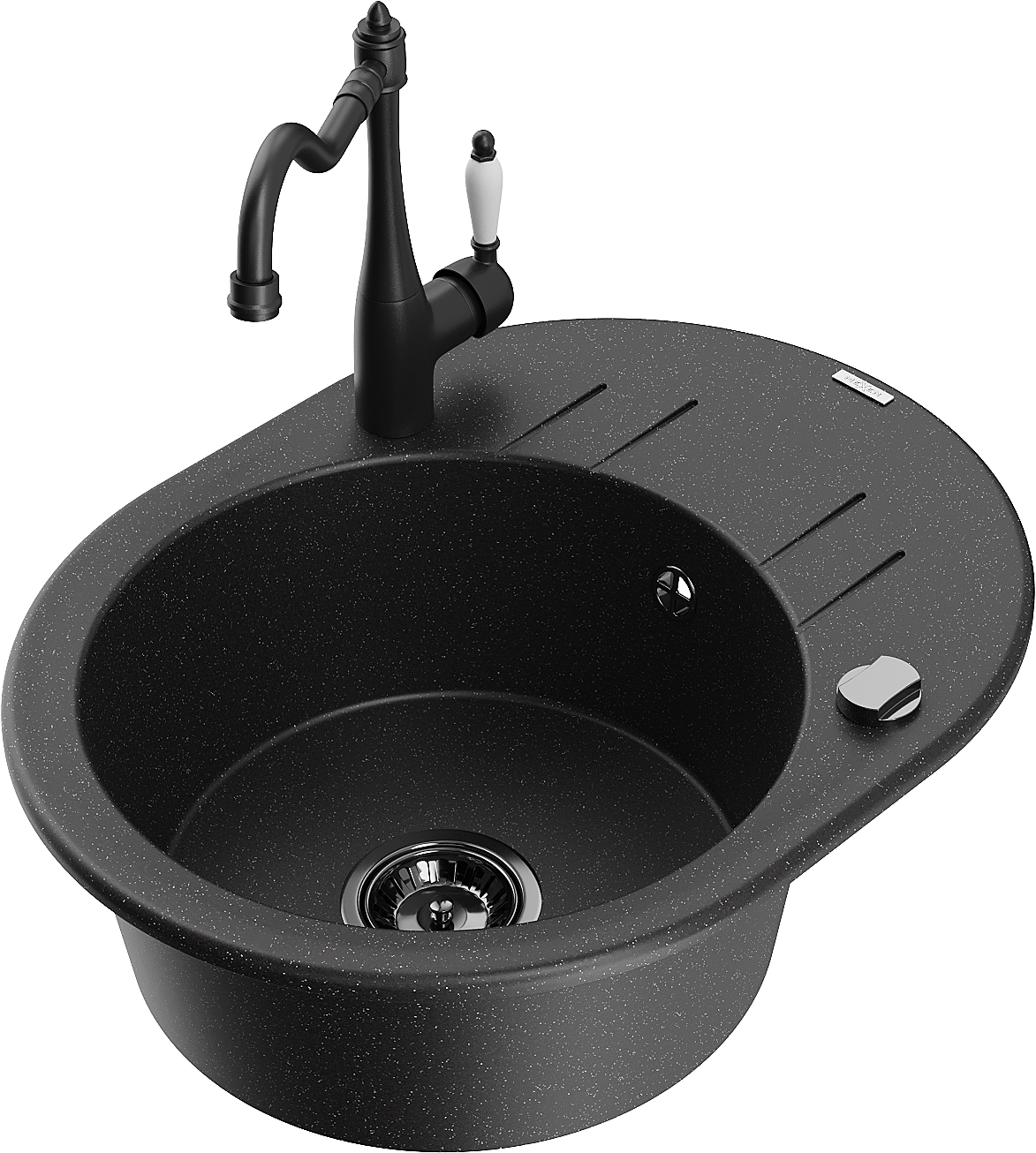 Mexen Kevin granitinė plautuvė 1 kamera su nusausinimo įtaisu ir virtuviniu maišytuvu Carla, juodas/sidabrinis metalikas