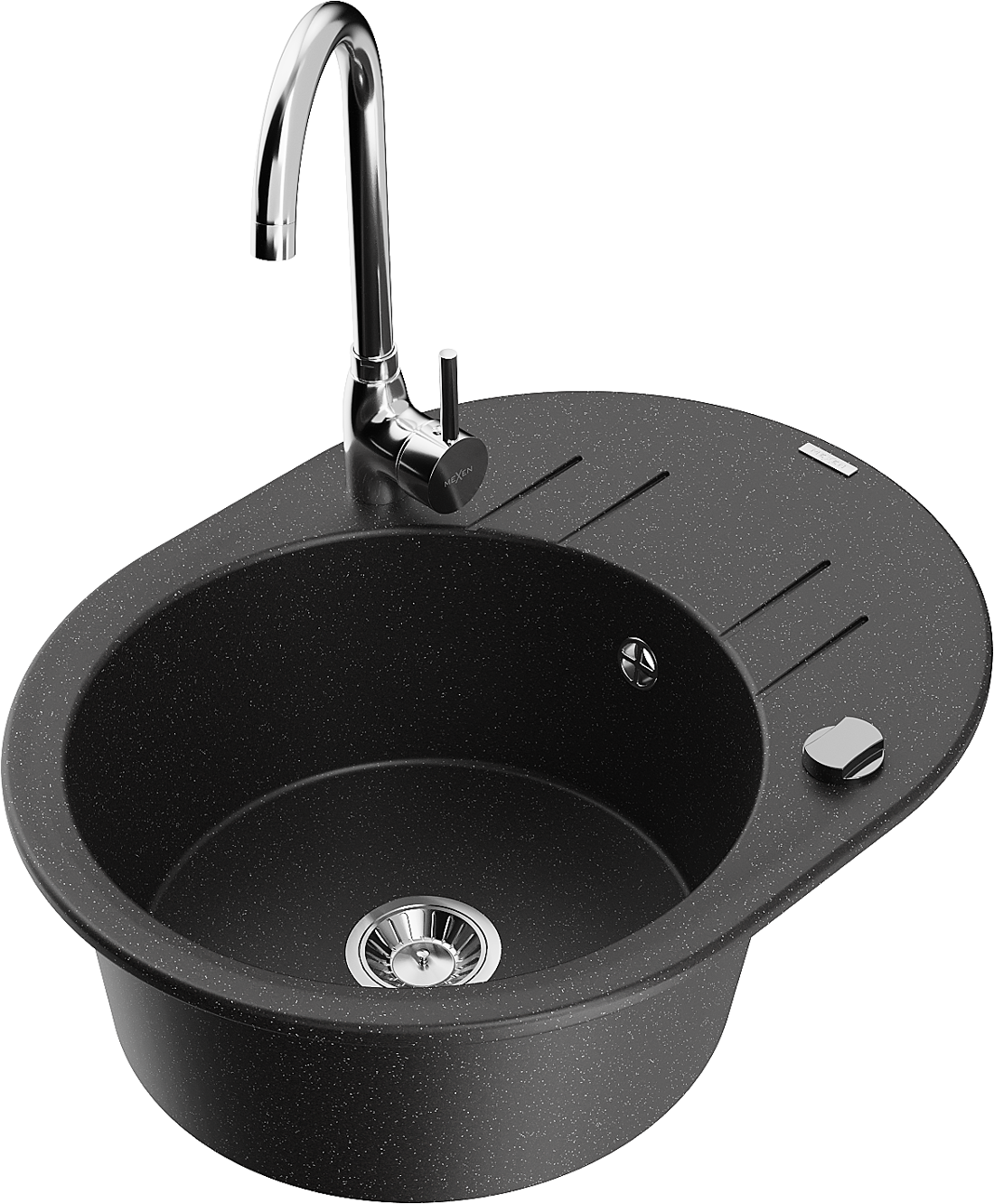 Mexen Kevin vienos kameros granito plautuvė su nusausintuvu ir virtuviniu čiaupu Telma, juoda/sidabrinis metalikas - 6517-73-67?