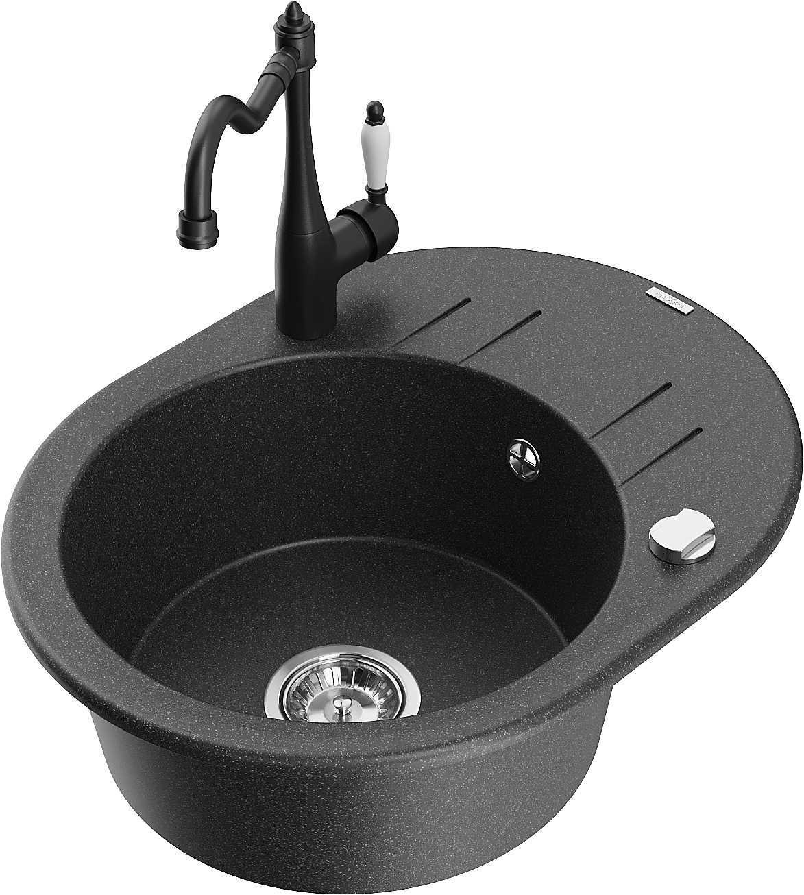 Mexen Kevin granitinė vieno dubens kriauklė su nutekėjimu ir virtuviniu maišytuvu Carla, juodas karpyta - 6517-76-670700-70