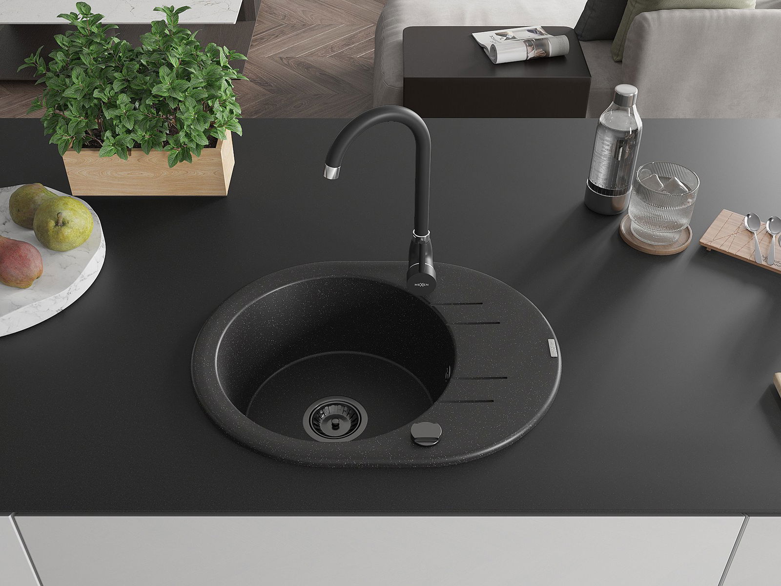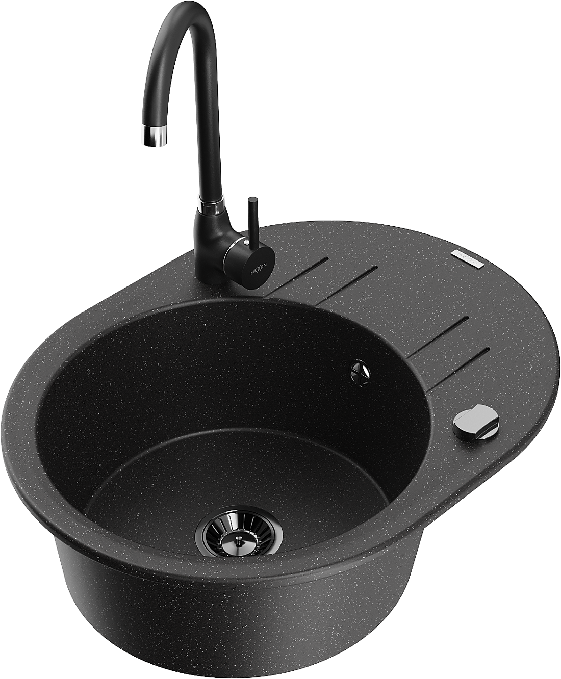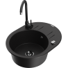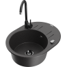 Mexen Kevin granitinė vienos kameros plautuvė su nutekamu ir virtuviniu maišytuvu Telma, juoda/sidabrinė metalikas