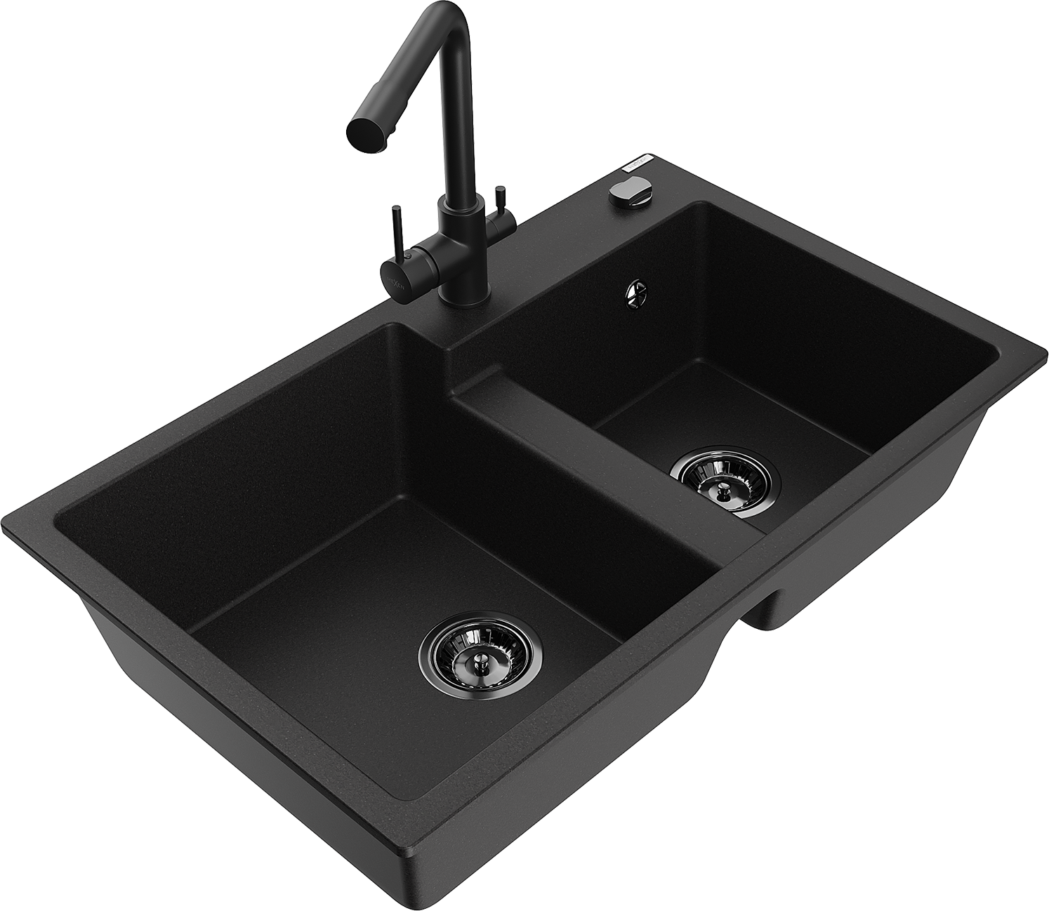 Mexen Tomas dviejų skylių granito virtuvės kriauklė su Duero virtuvės maišytuvu, juoda - 6516-77-671600-70-B