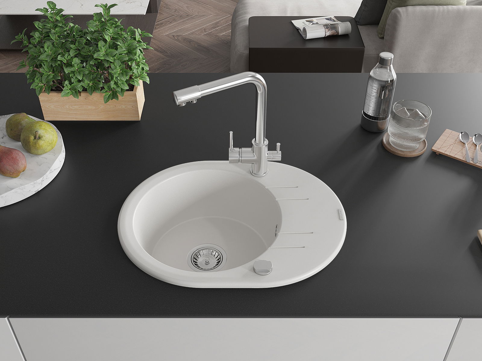 Kriauklės paviršius yra atsparūs dėmėms ir spalvos pasikeitimui, dėl kurio lengva valyti ir ilgą laiką išlaikyti savo spalvą. Estetinis ir praktiškai papildantis kiekvieną virtuvę.