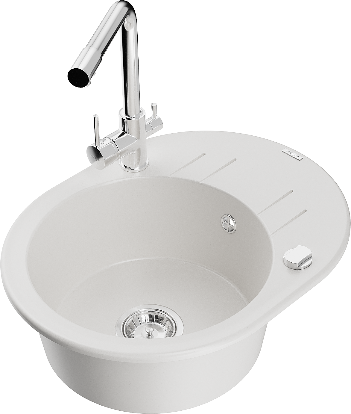 Mexen Kevin granito plautuvė 1 skyrius su nusausintuvu ir virtuviniu maišytuvu Duero, balta - 6517-20-671600-00