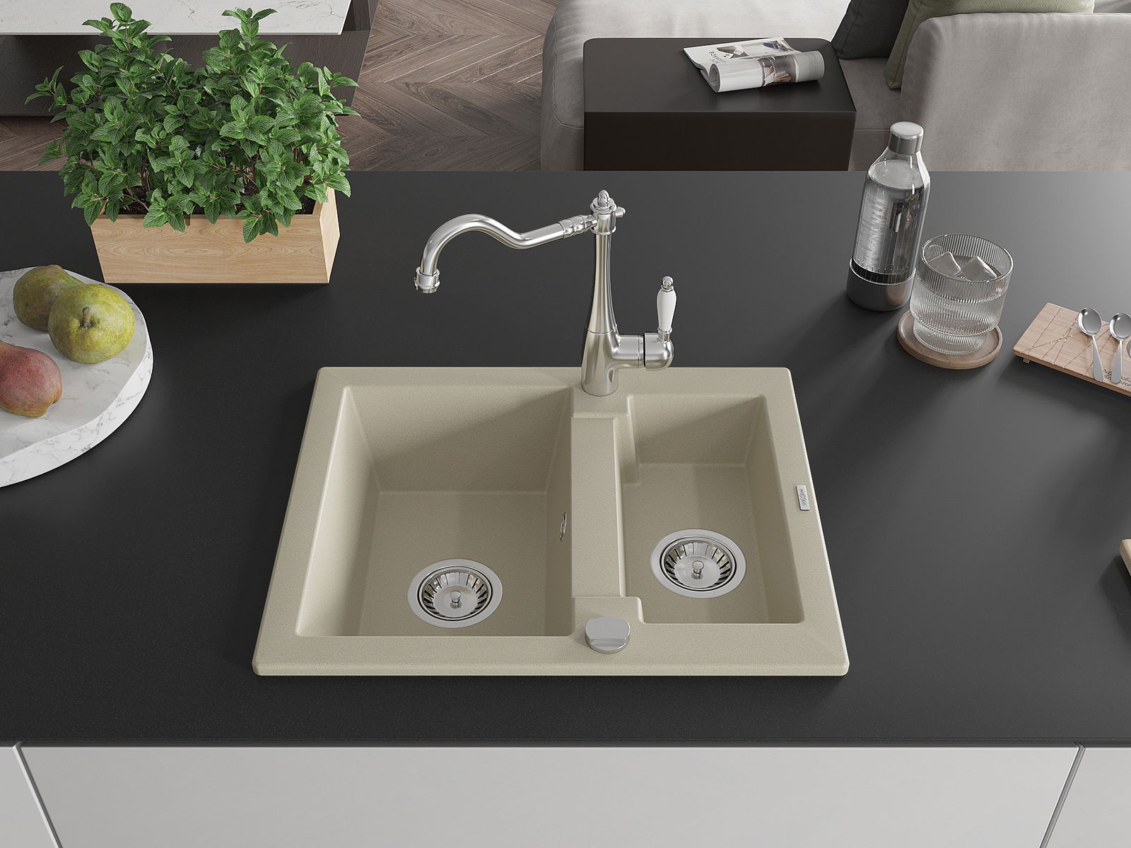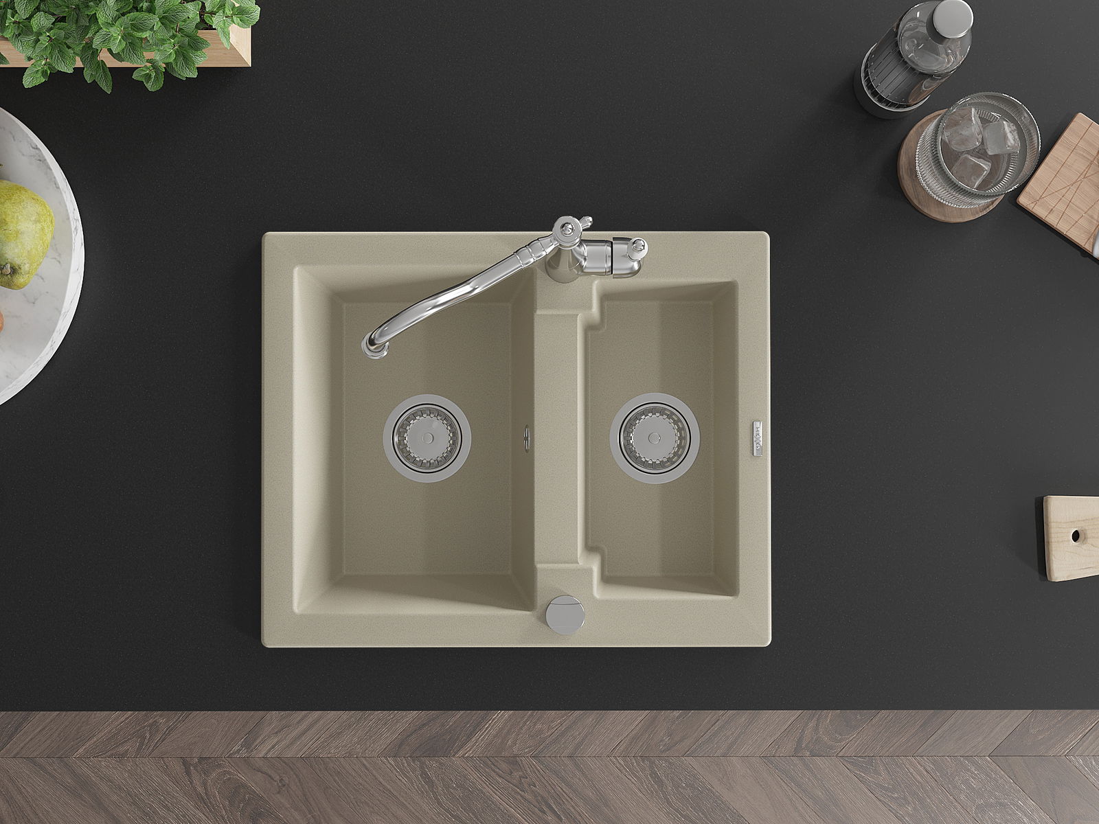 Kriauklės paviršius yra atsparūs dėmėms ir spalvos pasikeitimui, dėl kurio lengva valyti ir ilgą laiką išlaikyti savo spalvą. Estetinis ir praktiškai papildantis kiekvieną virtuvę.