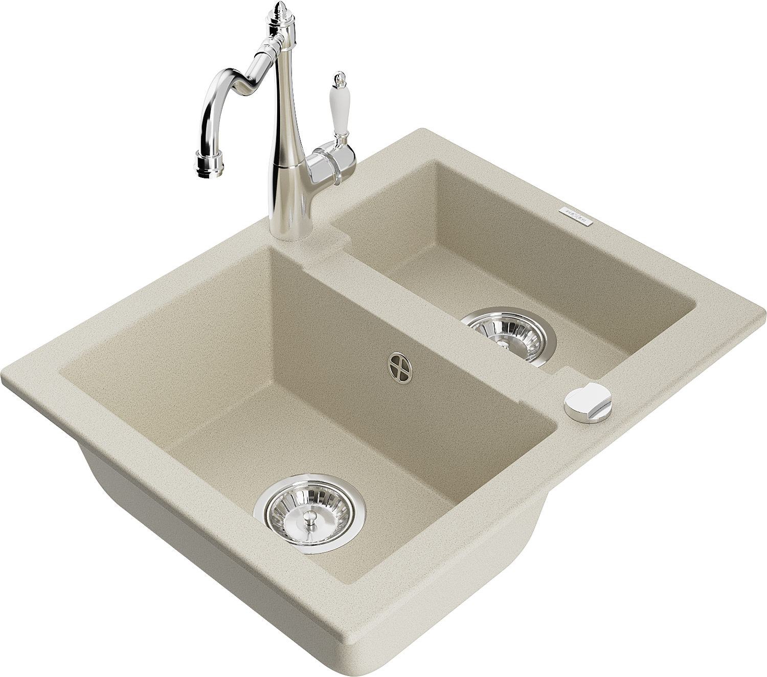 Mexen Carlos granitinis virtuvės kriauklė 1,5 kamerų su virtuvės maišytuvu Carla, smėlinis - 6518-69-670700-00
