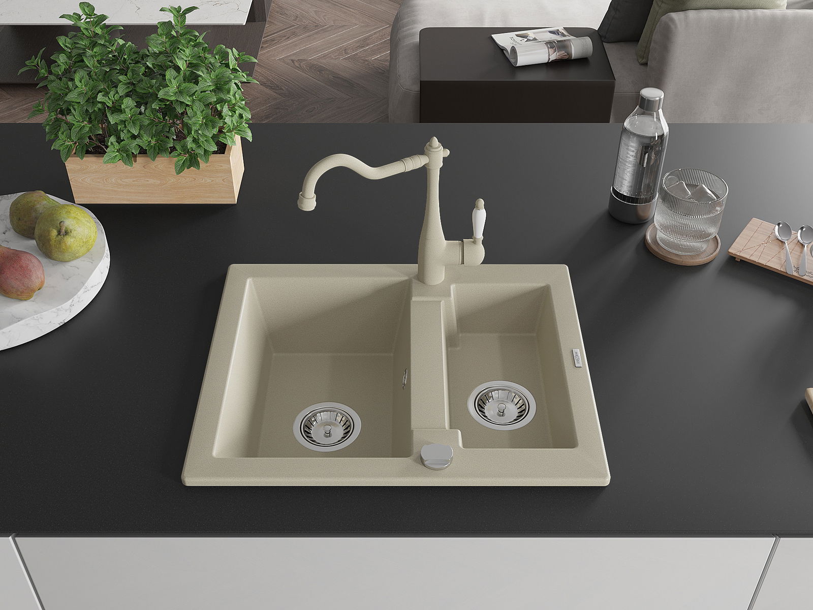 Mexen Carlos 1,5 dubens granito plautuvė su Carla virtuvės maišytuvu, smėlio spalvos - 6518-69-670700-69