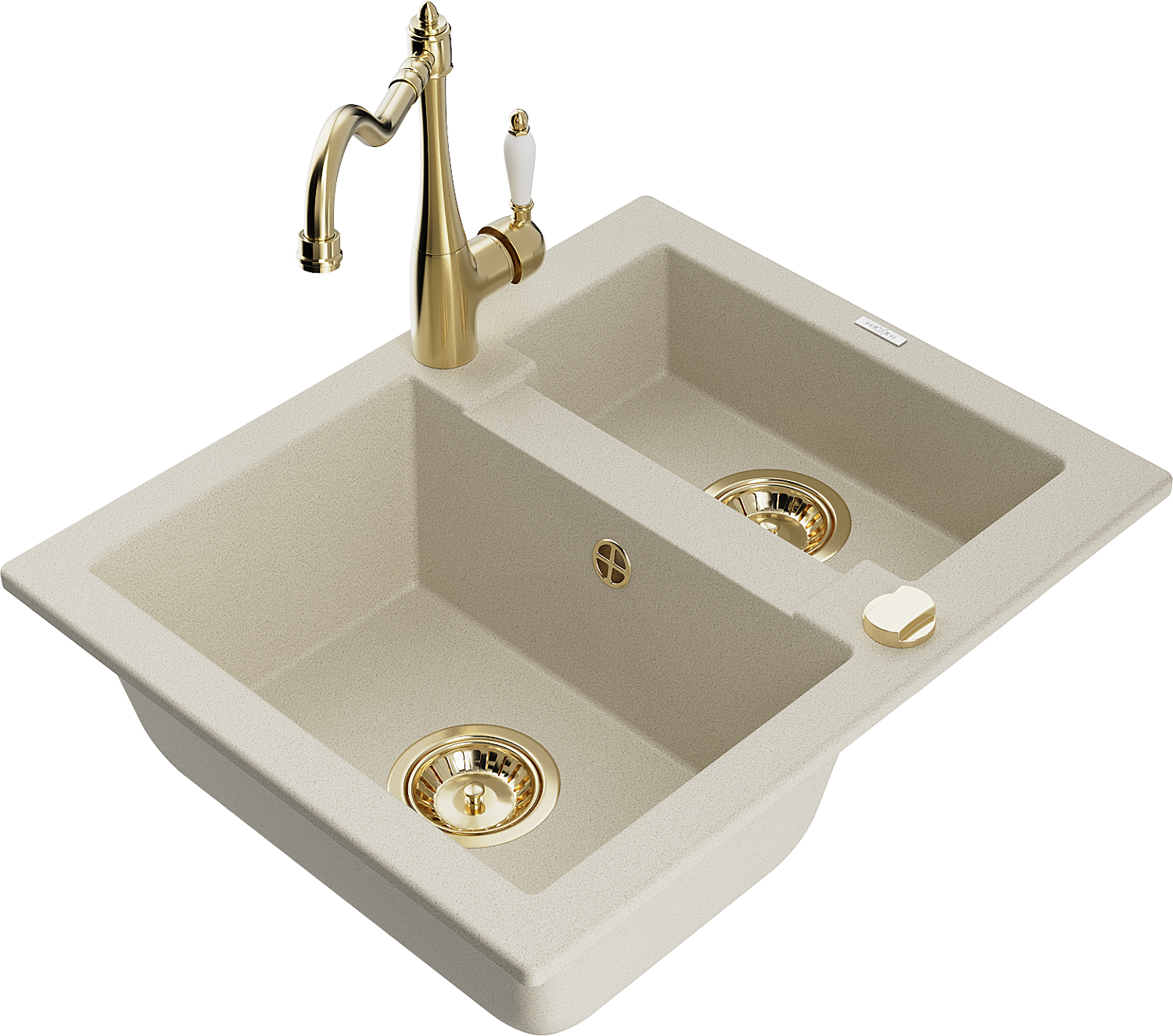 Mexen Carlos granitinis 1,5 sekcijos plautuvė su Carla virtuvės maišytuvu, smėlio spalvos - 6518-69-670700-50