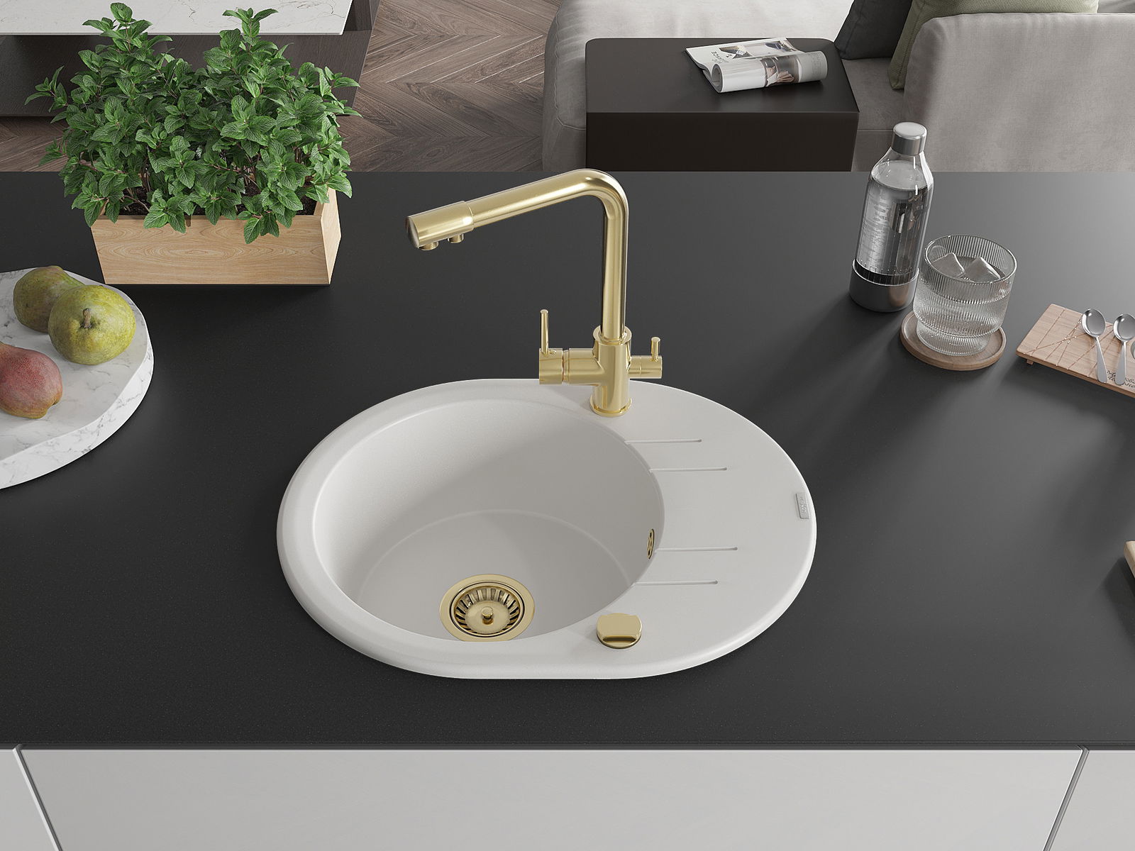 Kriauklės paviršius yra atsparūs dėmėms ir spalvos pasikeitimui, dėl kurio lengva valyti ir ilgą laiką išlaikyti savo spalvą. Estetinis ir praktiškai papildantis kiekvieną virtuvę.