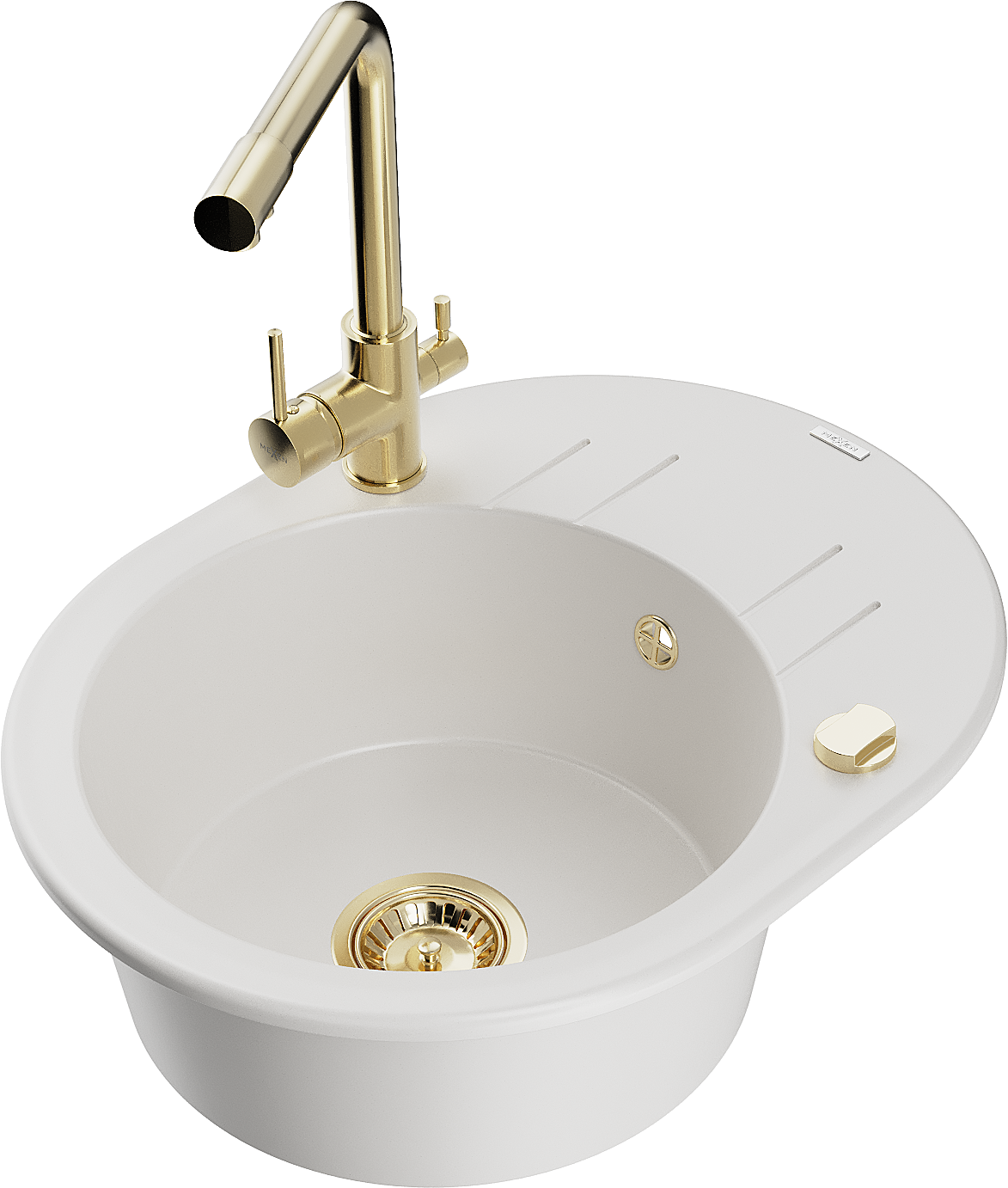 Mexen Kevin vienos sekcijos granito plautuvė su nuvarvėjimu ir virtuviniu maišytuvu Duero, balta - 6517-20-671600-50