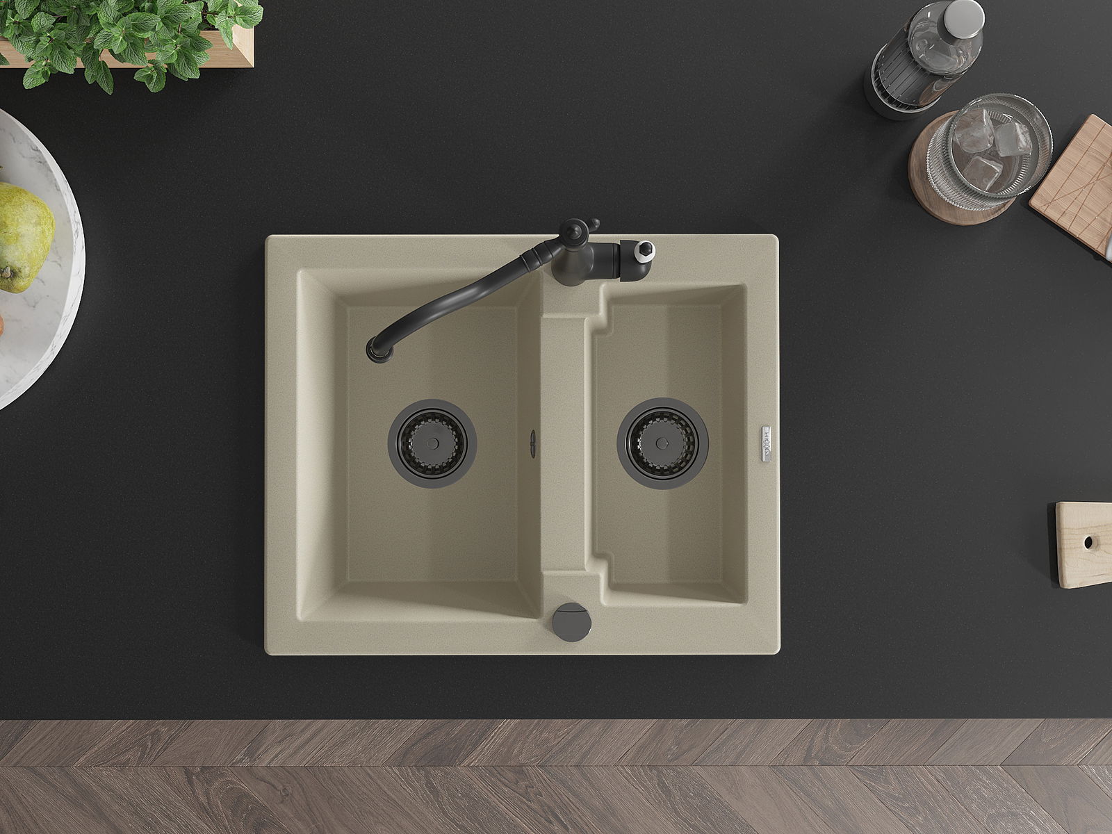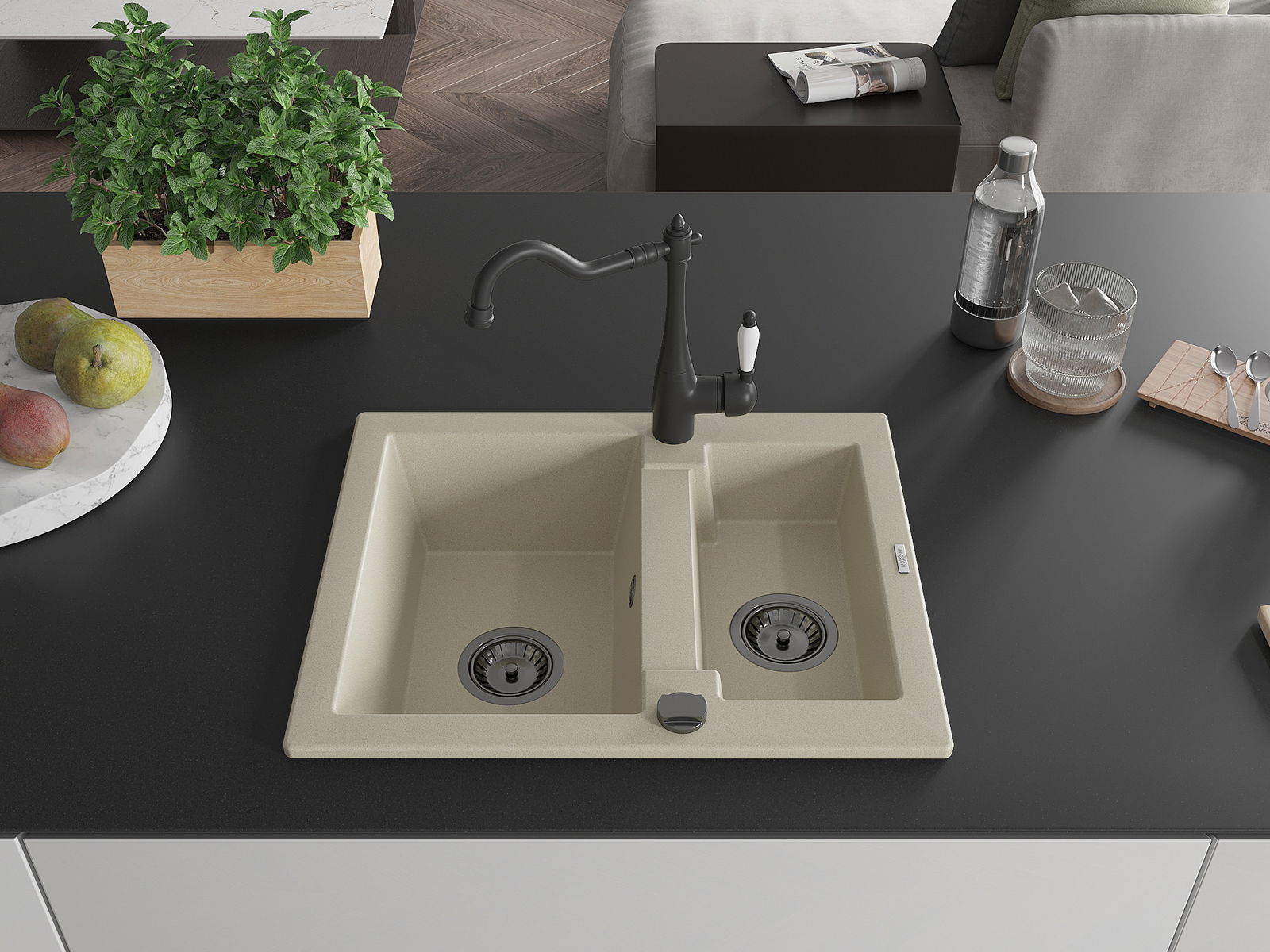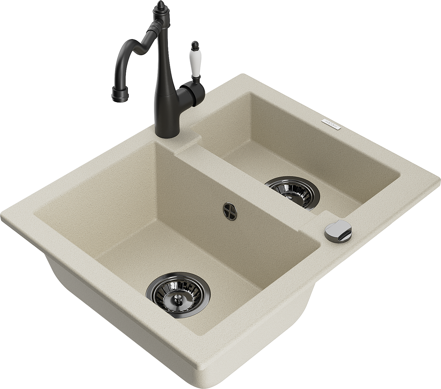 Mexen Carlos granitinis virtuvės kriauklė 1,5 dubens su virtuvės maišytuvu Carla, smėlio spalvos - 6518-69-670700-70