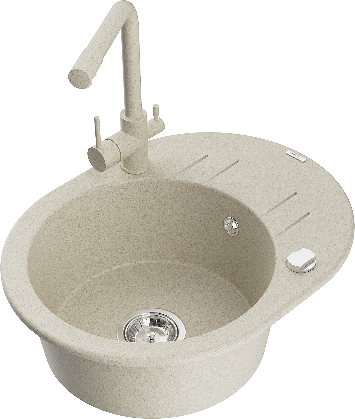 Mexen Kevin granitinė vienos kriauklės plautuvė su nutekamuoju staleliu ir virtuviniu maišytuvu Duero, smėlio spalvos
