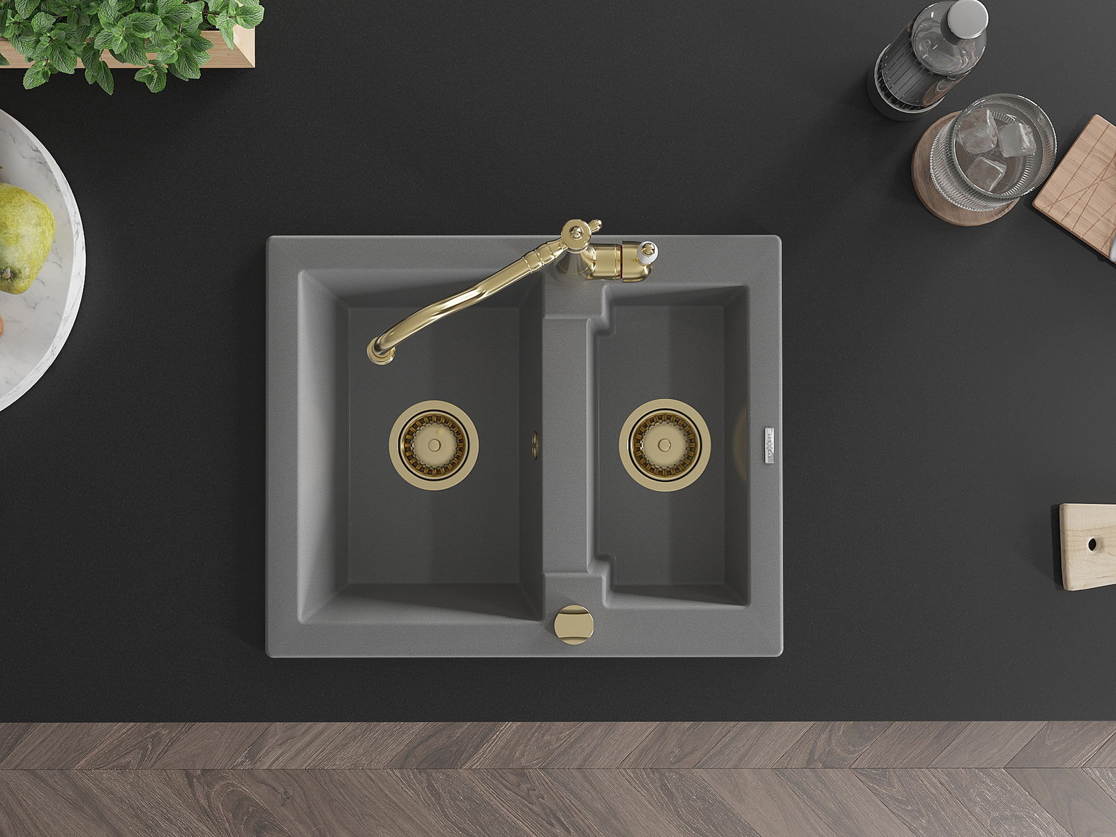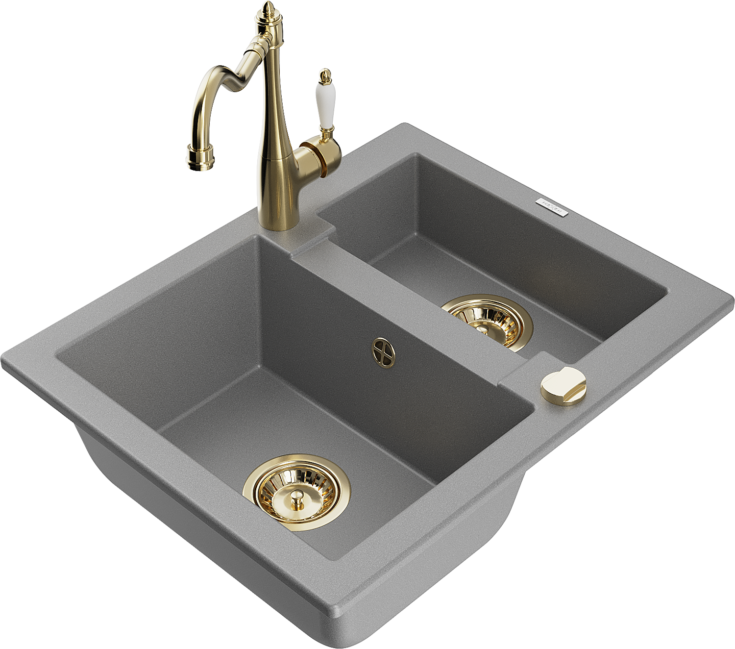 Mexen Carlos granitinė virtuvinė kriauklė su 1,5 skyrelio ir virtuviniu maišytuvu Carla, pilka - 6518-71-670700-50