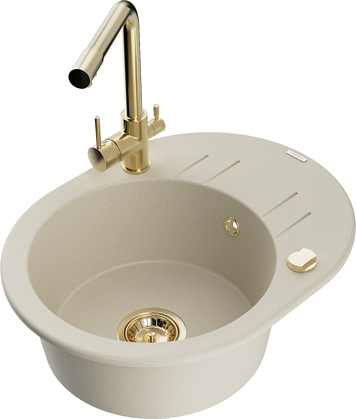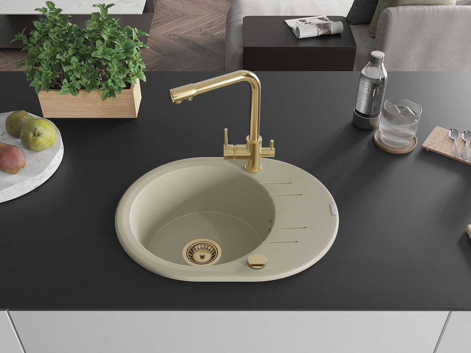 Mexen Kevin granito plautuvė 1 skyrelio su nutekamuoju paviršiumi ir virtuviniu maišytuvu Duero, smėlio - 6517-69-671600-50