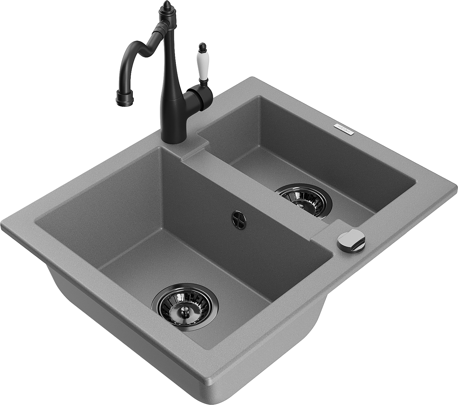 Mexen Carlos granitinė 1,5-skylių virtuvės plautuvė su Carla maišytuvu, pilka - 6518-71-670700-70-B