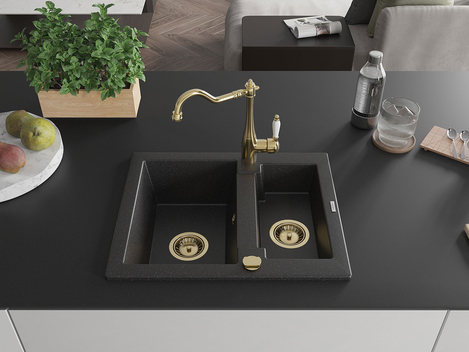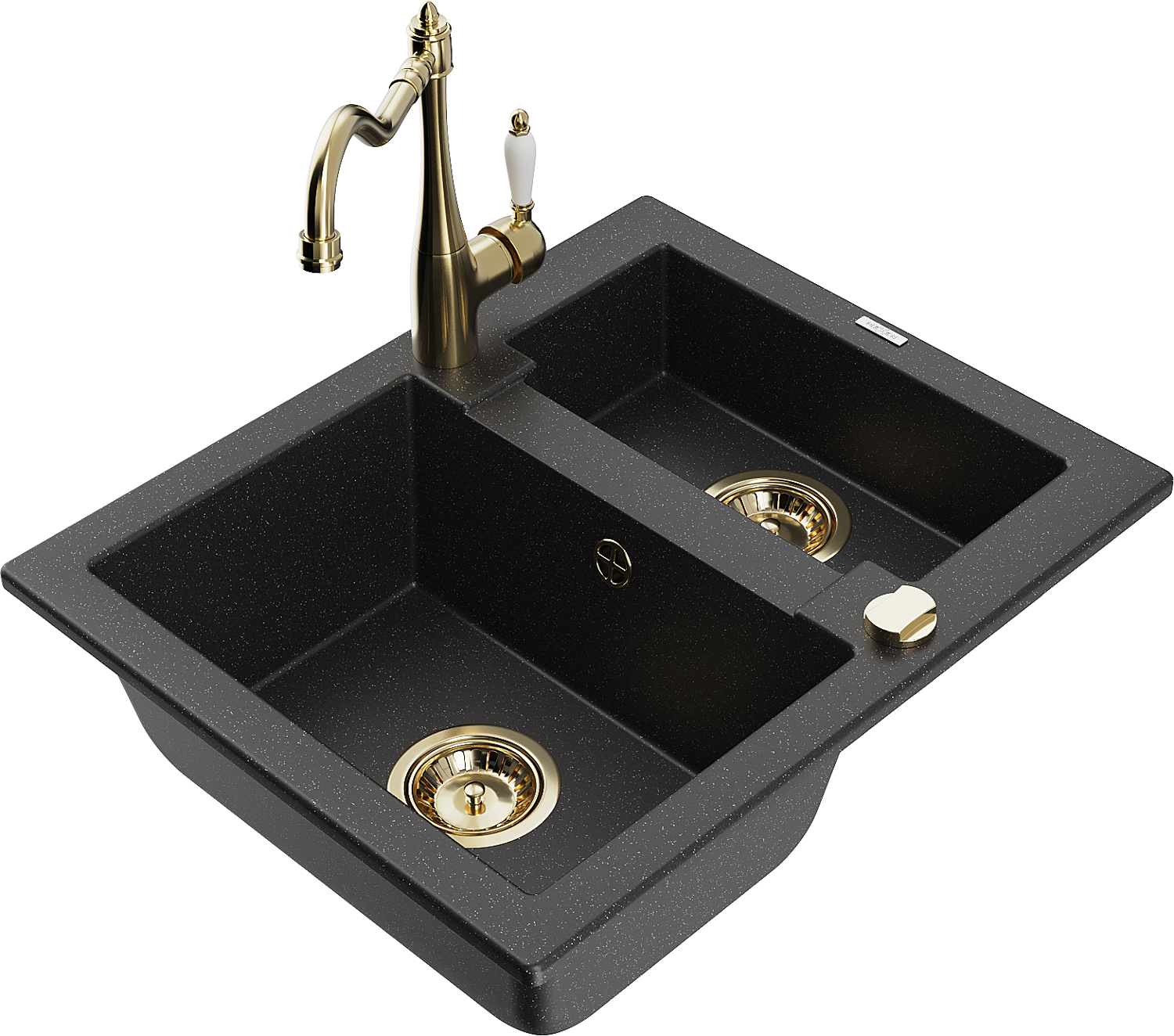 Mexen Carlos granito plautuvė 1,5 skyrių su virtuviniu maišytuvu Carla, juodas/sidabrinis metalo sp. - 6518-73-670700-50