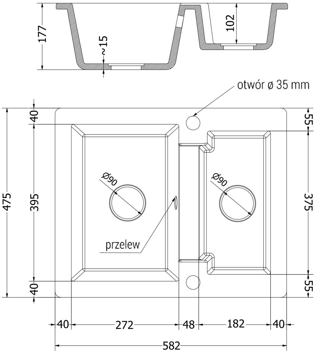 Skyrių gylis: 162 mm (didesnis), 102 mm (mažesnis)