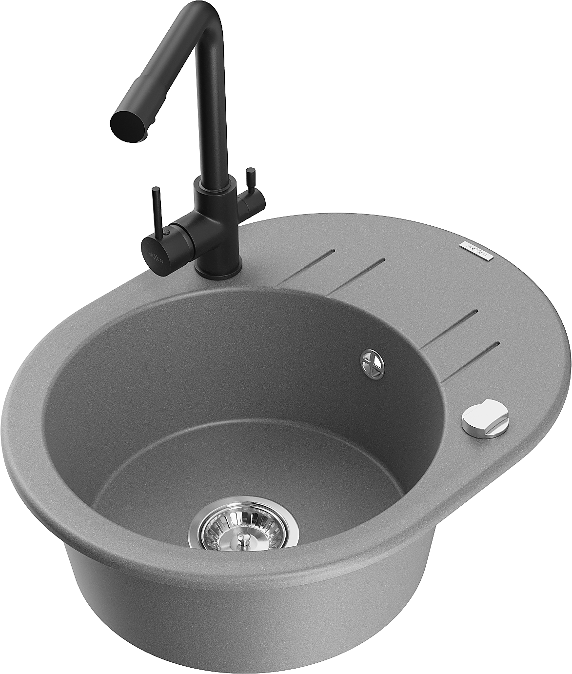 Mexen Kevin granito plautuvė 1 skyriumi su nusausinimo skyriumi ir virtuviniu maišytuvu Duero, pilkas - 6517-71-671600-70