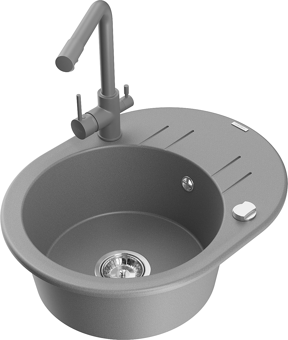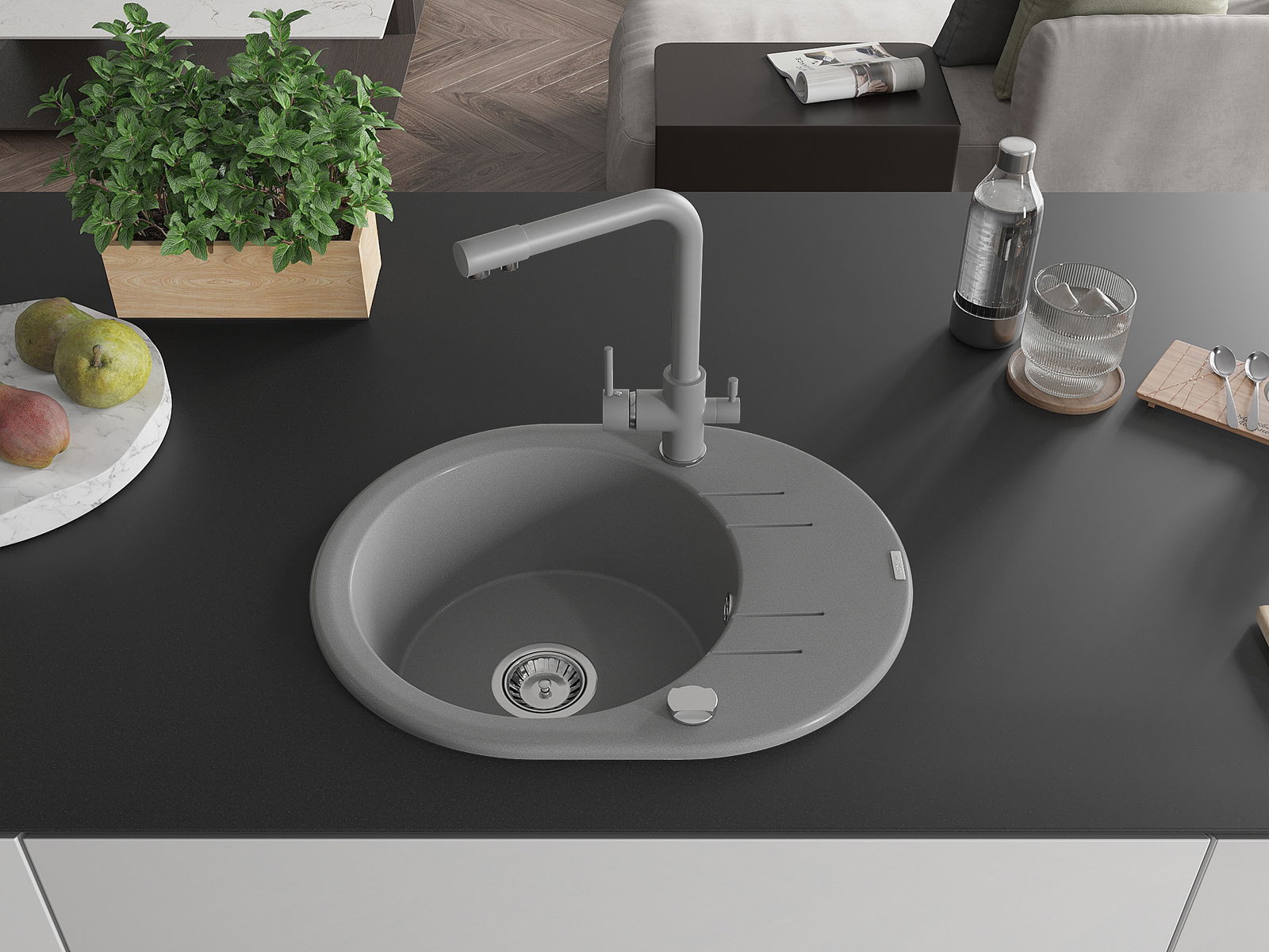 Mexen Kevin granitinė vienos kameros plautuvė su nusausinimo vieta ir virtuviniu maišytuvu Duero, pilka - 6517-71-671600-71