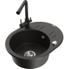 Mexen Kevin granitinė vienos kameros kriauklė su nusausintuvu ir virtuvės maišytuvu Duero, juodai sidabrinis metalikas