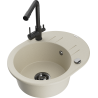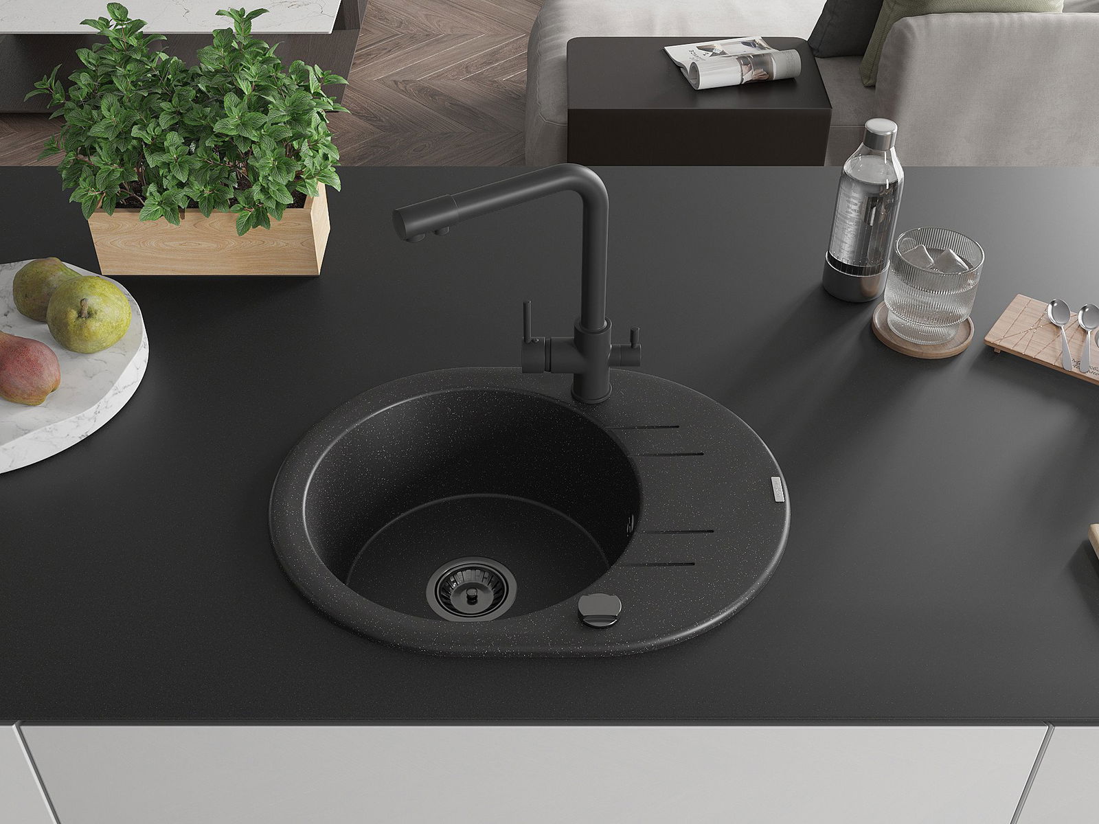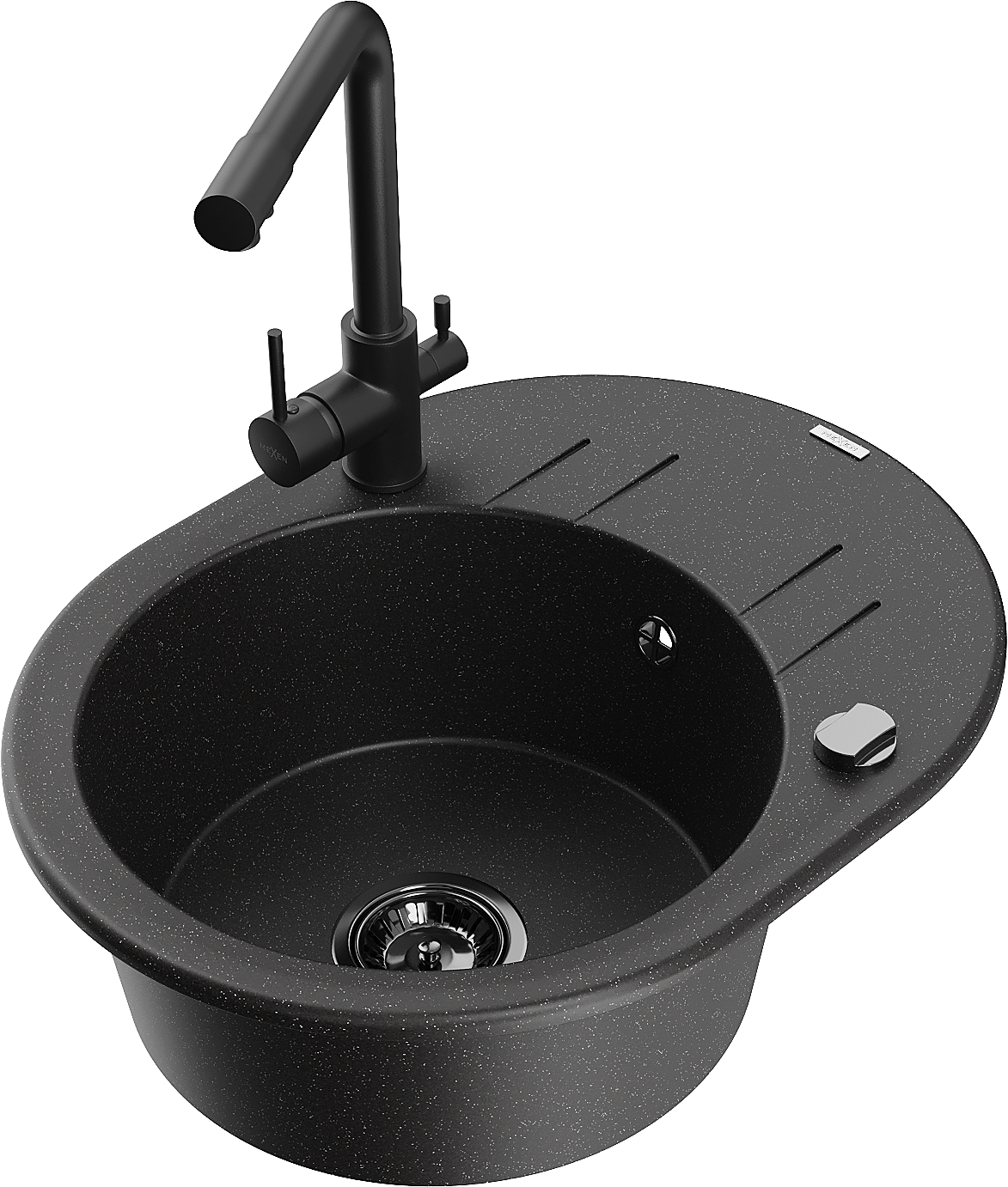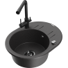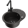 Mexen Kevin vienos kameros granito kriauklė su nusausintuvu ir virtuvės maišytuvu Duero, juodas/sidabrinis metalo atspalvis