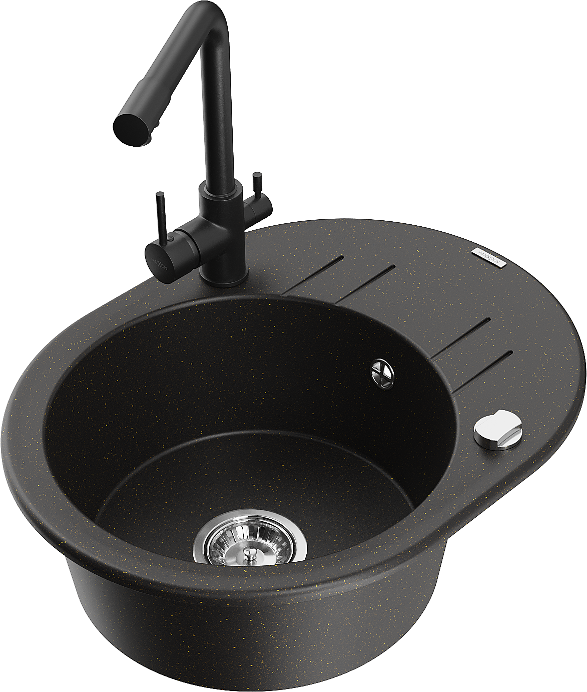 Mexen Kevin vienos kameros granitinis kriauklė su nutekėjimu ir virtuvės maišytuvu Duero, juoda/auksinė metaliko - 6517-75-6716?