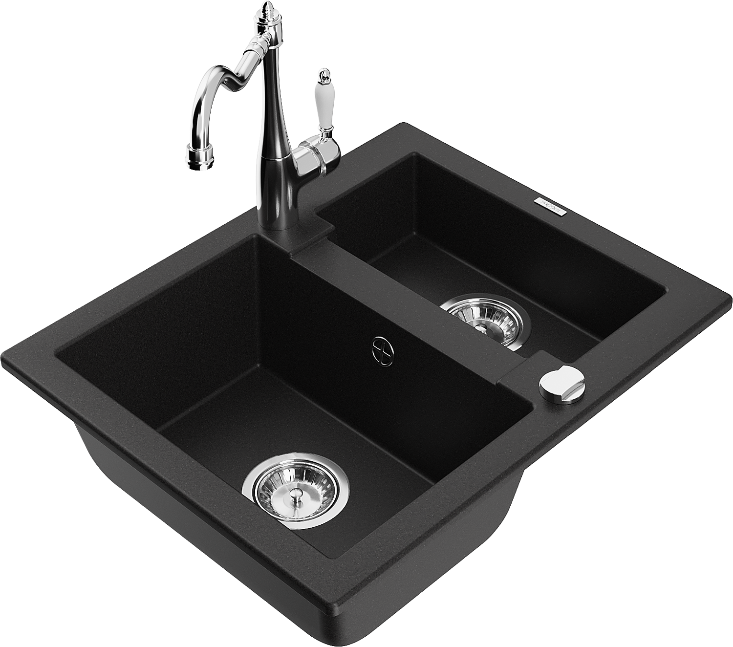 Mexen Carlos granitinė 1,5 skyrių plautuvė su Carla virtuviniu maišytuvu, juoda - 6518-77-670700-00