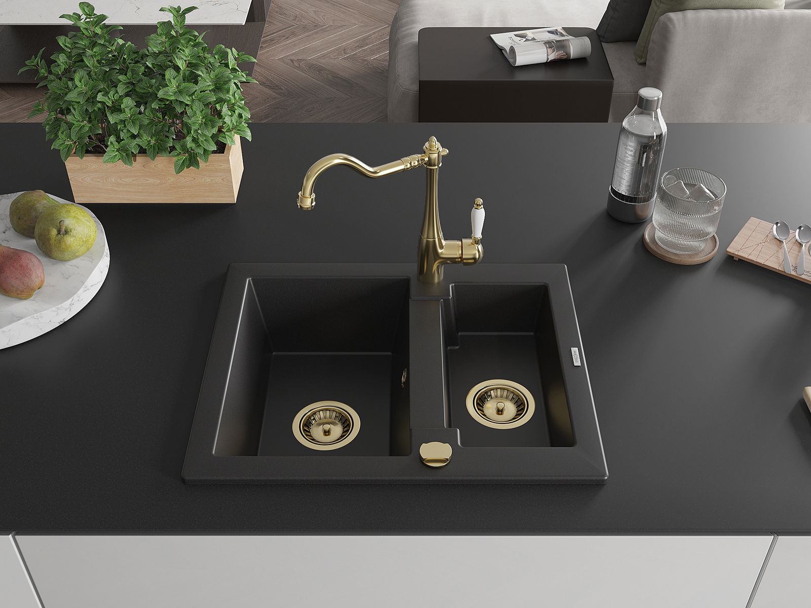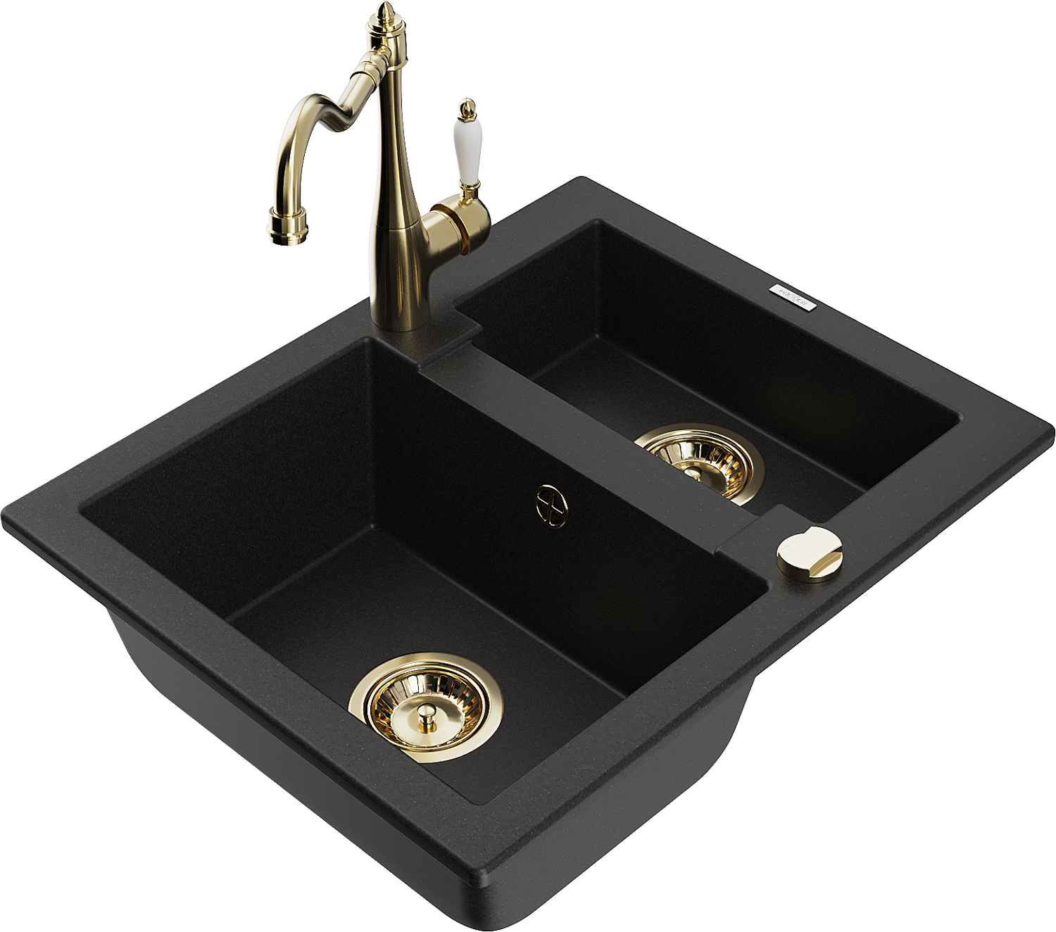 Mexen Carlos granitinis 1,5 skylių plautuvė su virtuviniu maišytuvu Carla, juodas - 6518-77-670700-50