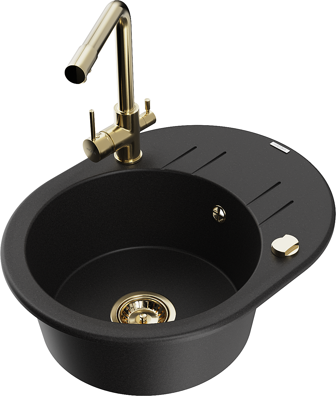 Mexen Kevin vienos dubens granitinė plautuvė su nutekėjimu ir Duero virtuviniu maišytuvu, juoda - 6517-77-671600-50