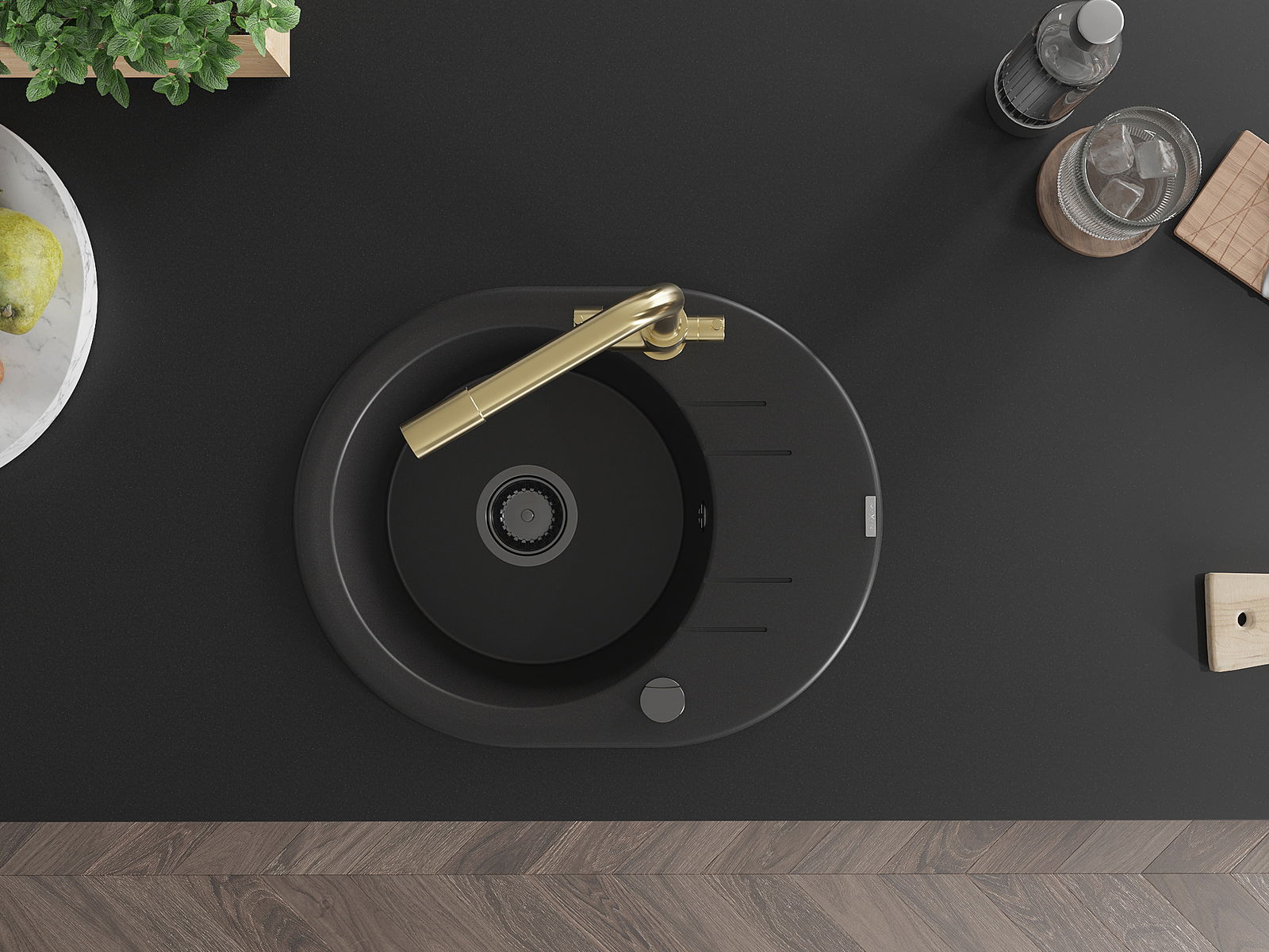 Mexen Kevin granitinė vienos plautuvės kriauklė su laikikliu ir virtuviniu maišytuvu Duero, juodas - 6517-77-671600-50-B