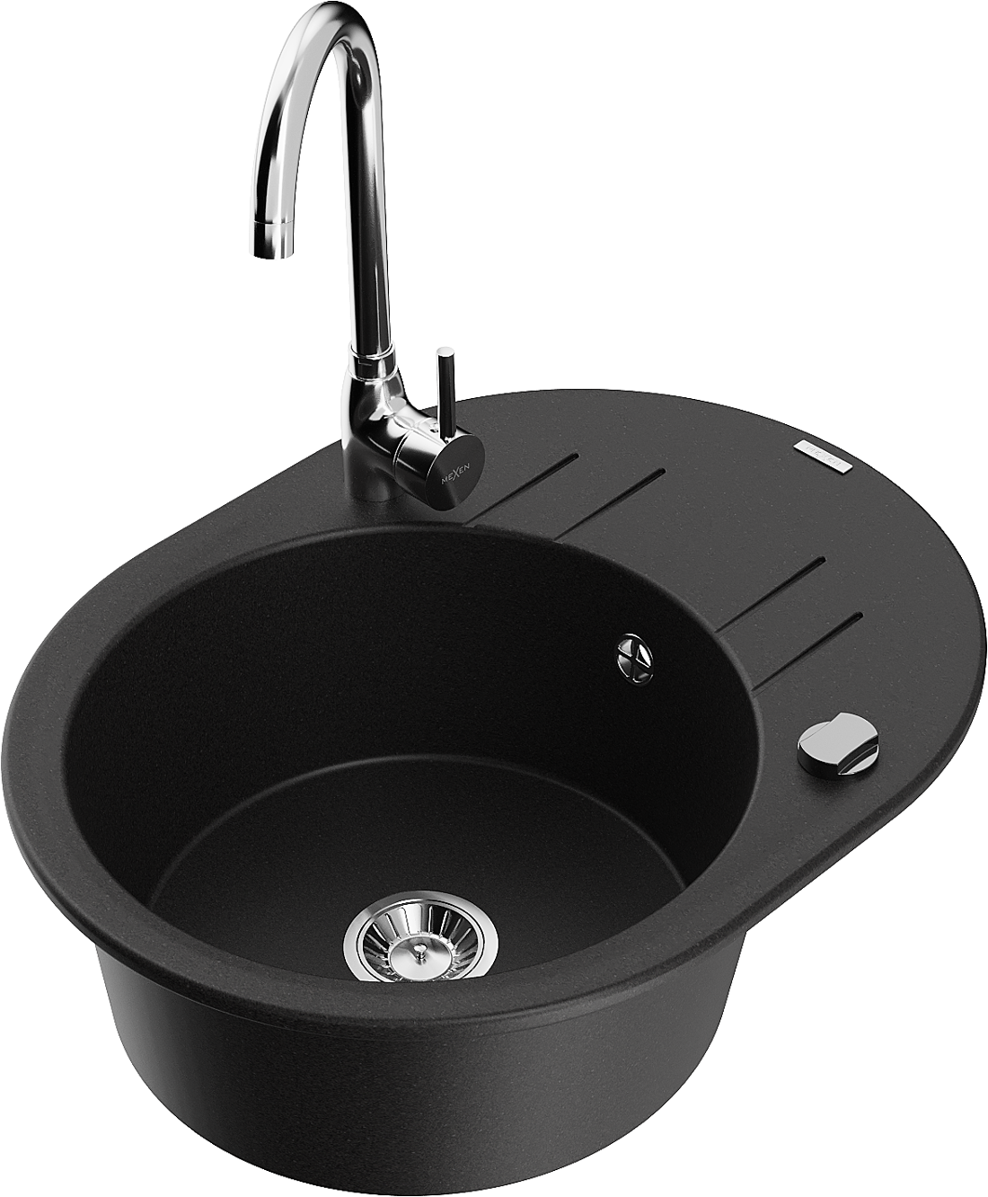 Mexen Kevin granitinis plautuvė vienos kameros su nusausinimu ir virtuviniu maišytuvu Telma, juodas - 6517-77-670200-00