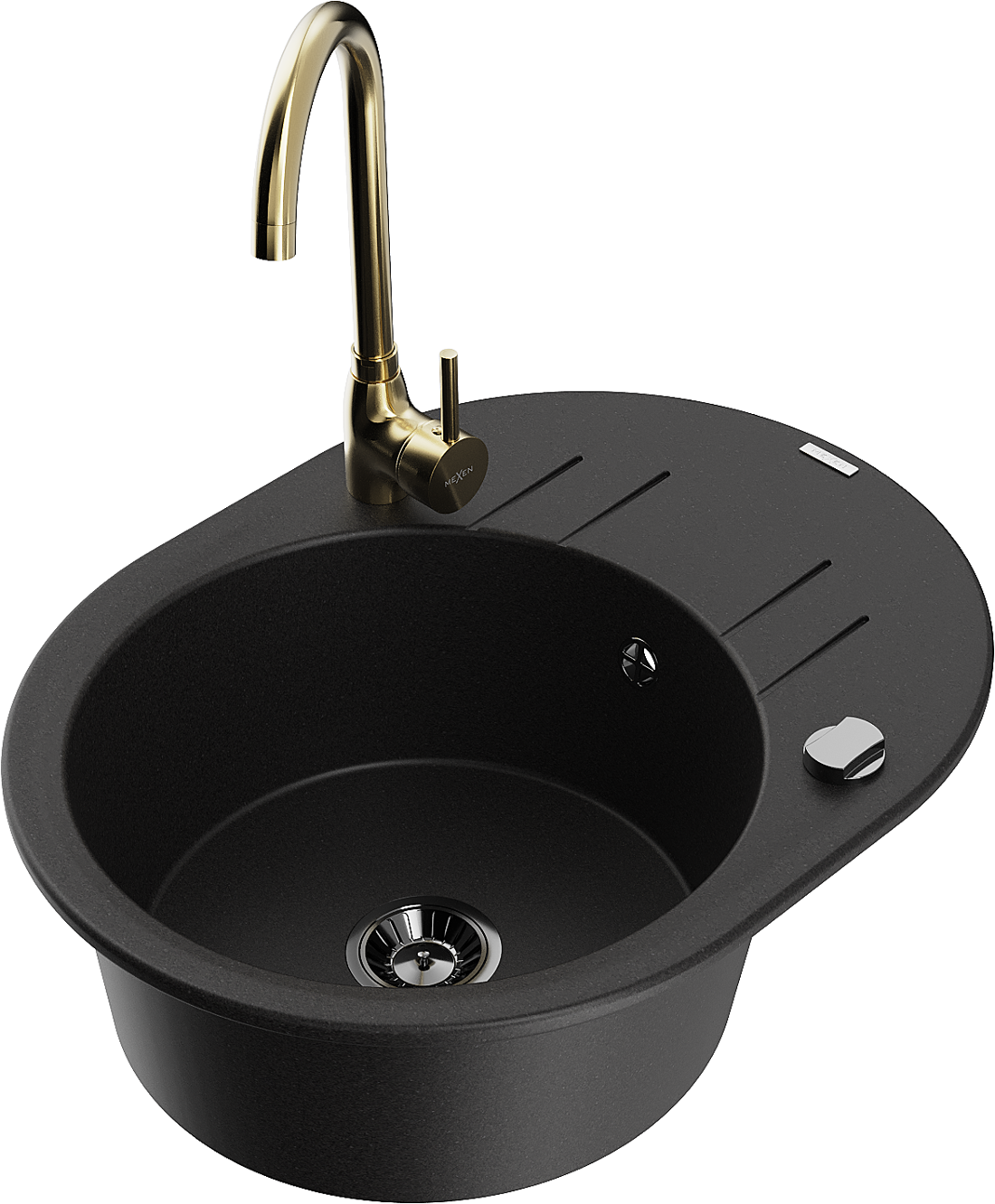 Mexen Kevin granitinė vienos kameros kriauklė su nusausinimo lenta ir Telma virtuviniu maišytuvu, juodas - 6517-77-670200-50-B