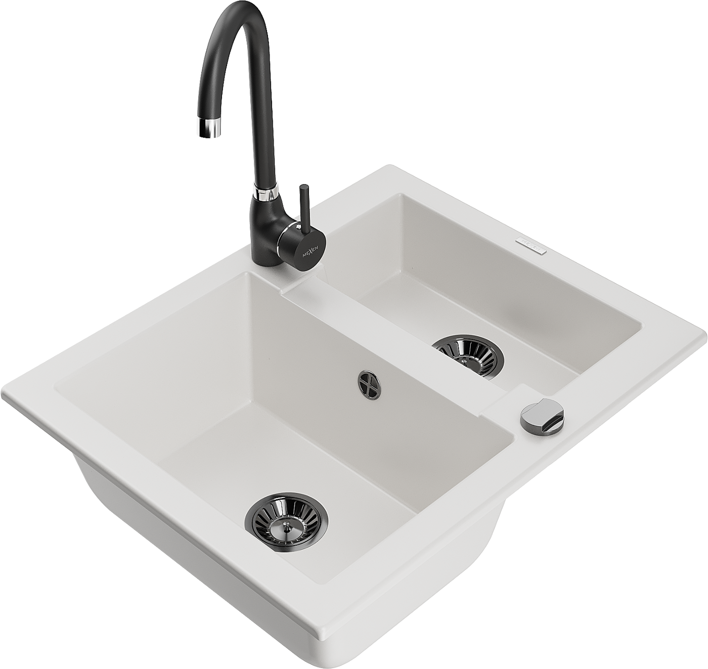 Mexen Carlos granito plautuvė 1,5 skyrelio su virtuvine maišytuvu Telma, balta - 6518-20-670200-70