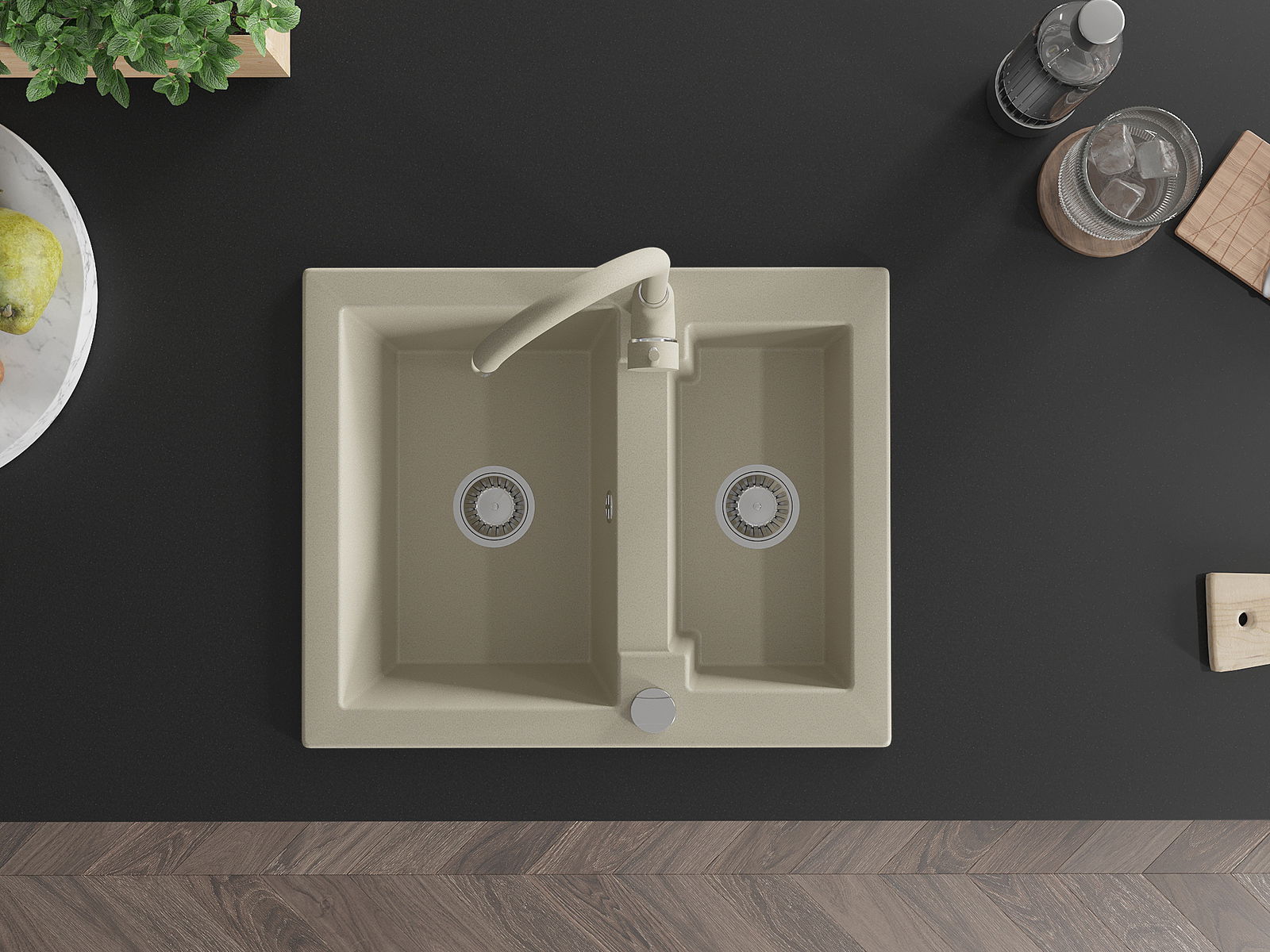 Mexen Carlos granito plautuvė 1,5 kamerinė su Telma virtuviniu maišytuvu, smėlio spalvos - 6518-69-670200-69