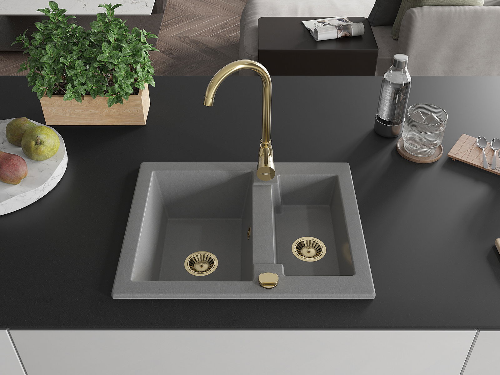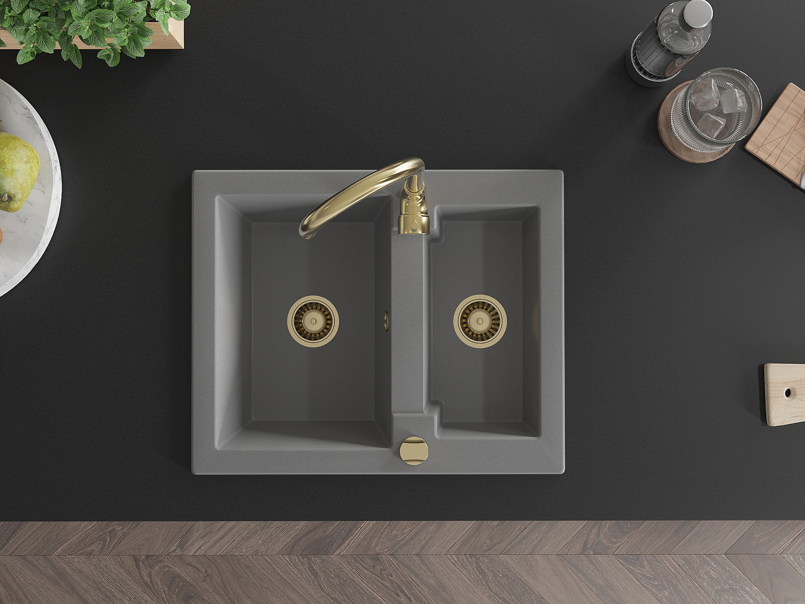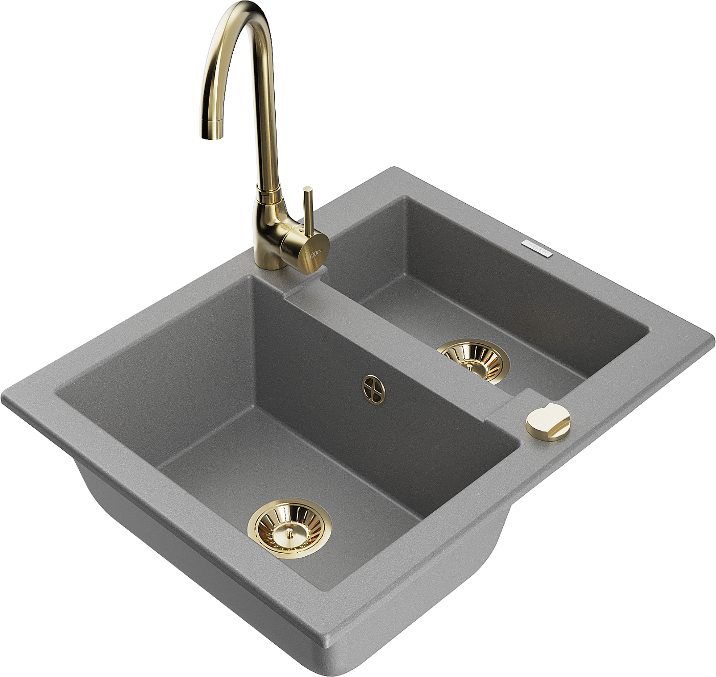 Mexen Carlos 1,5 skylių granitinis kriauklė su Telma maišytuvu, pilkas - 6518-71-670200-50