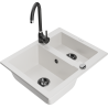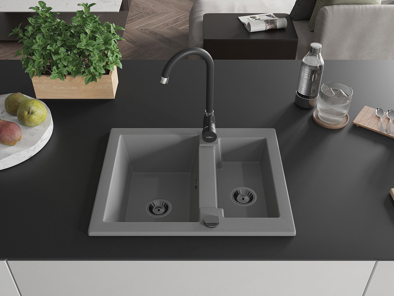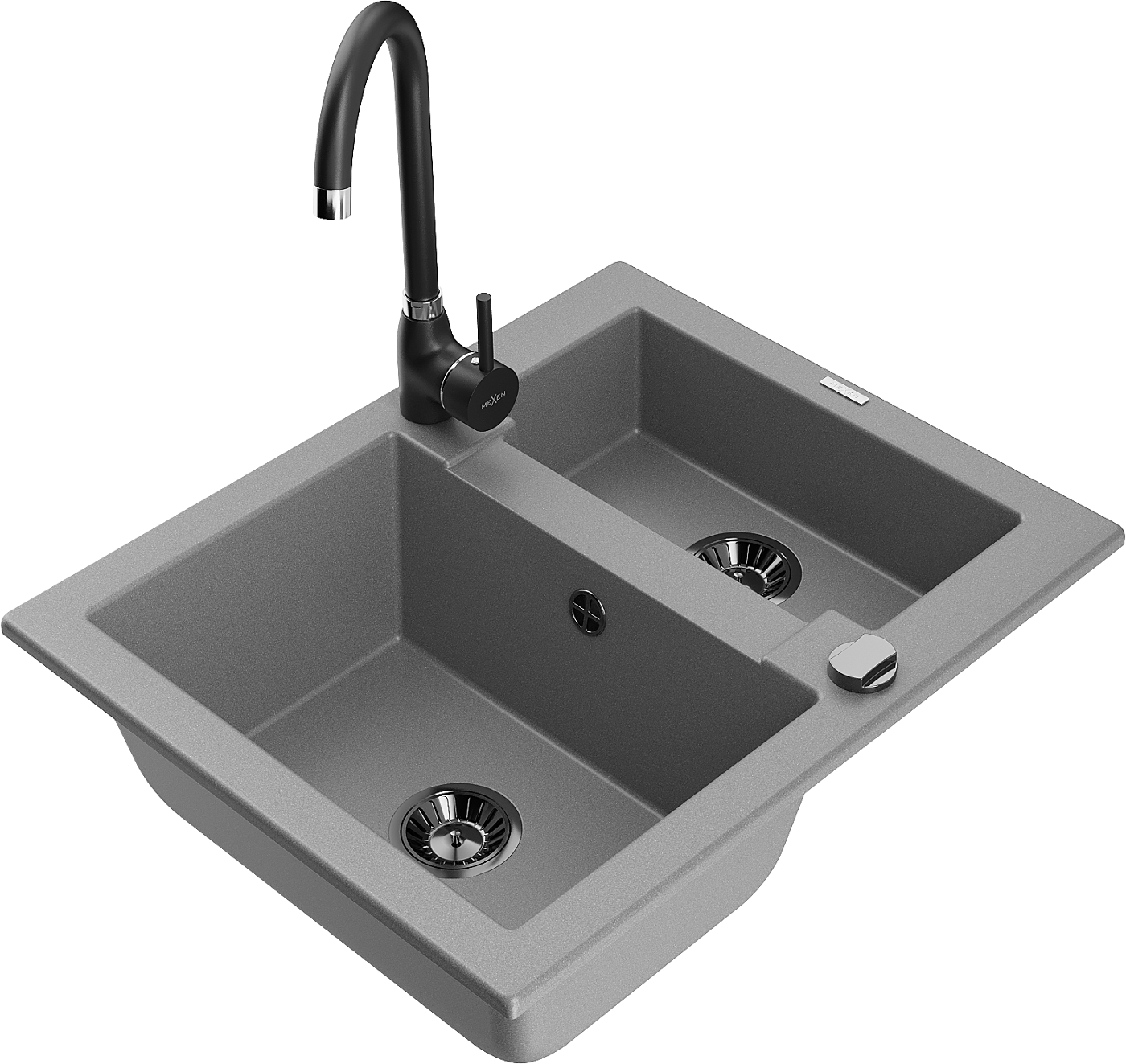 Mexen Carlos granito kriauklė 1,5 kameros su virtuviniu maišytuvu Telma, pilka - 6518-71-670200-70-B