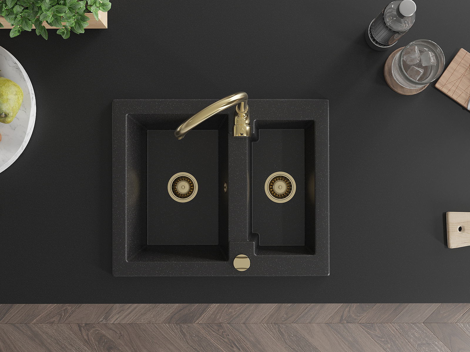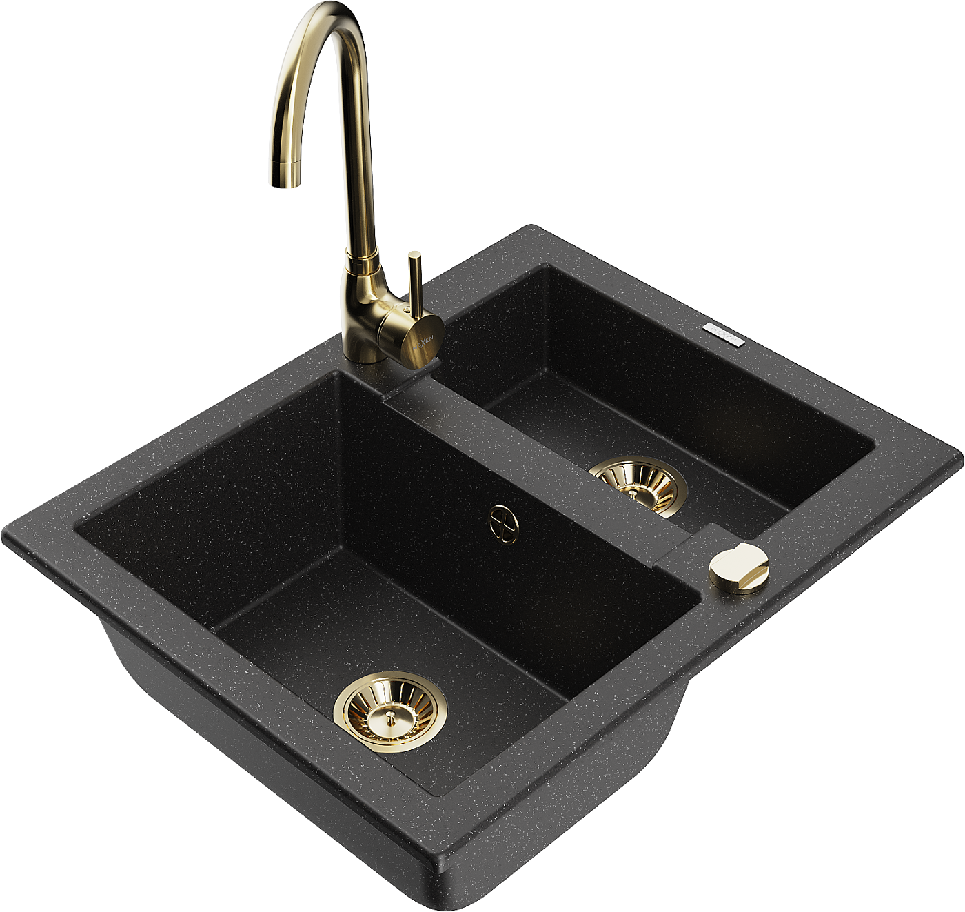 Mexen Carlos granitinė plautuvė su 1,5 kameromis su Telma virtuviniu maišytuvu, juoda/sidabrinė metalinė