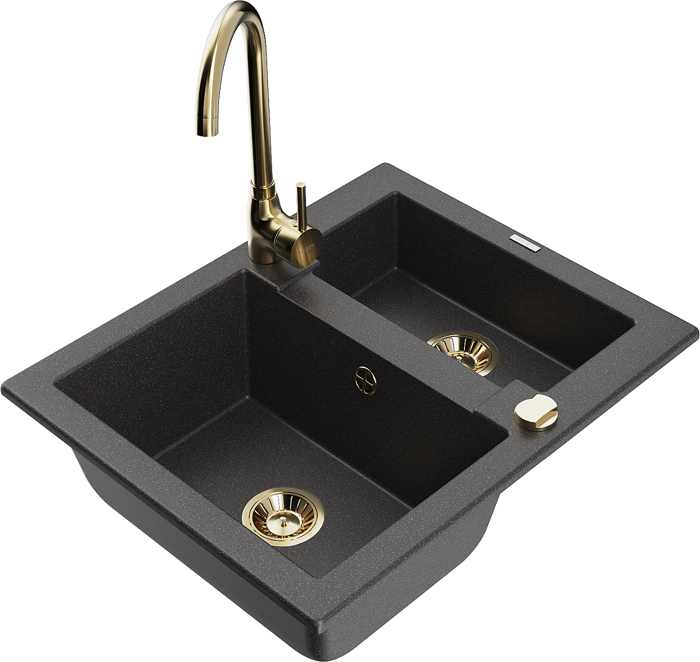 Mexen Carlos granitinė virtuvės plautuvė 1,5 kamerų su Telma virtuvės maišytuvu, juoda dėmėta - 6518-76-670200-50