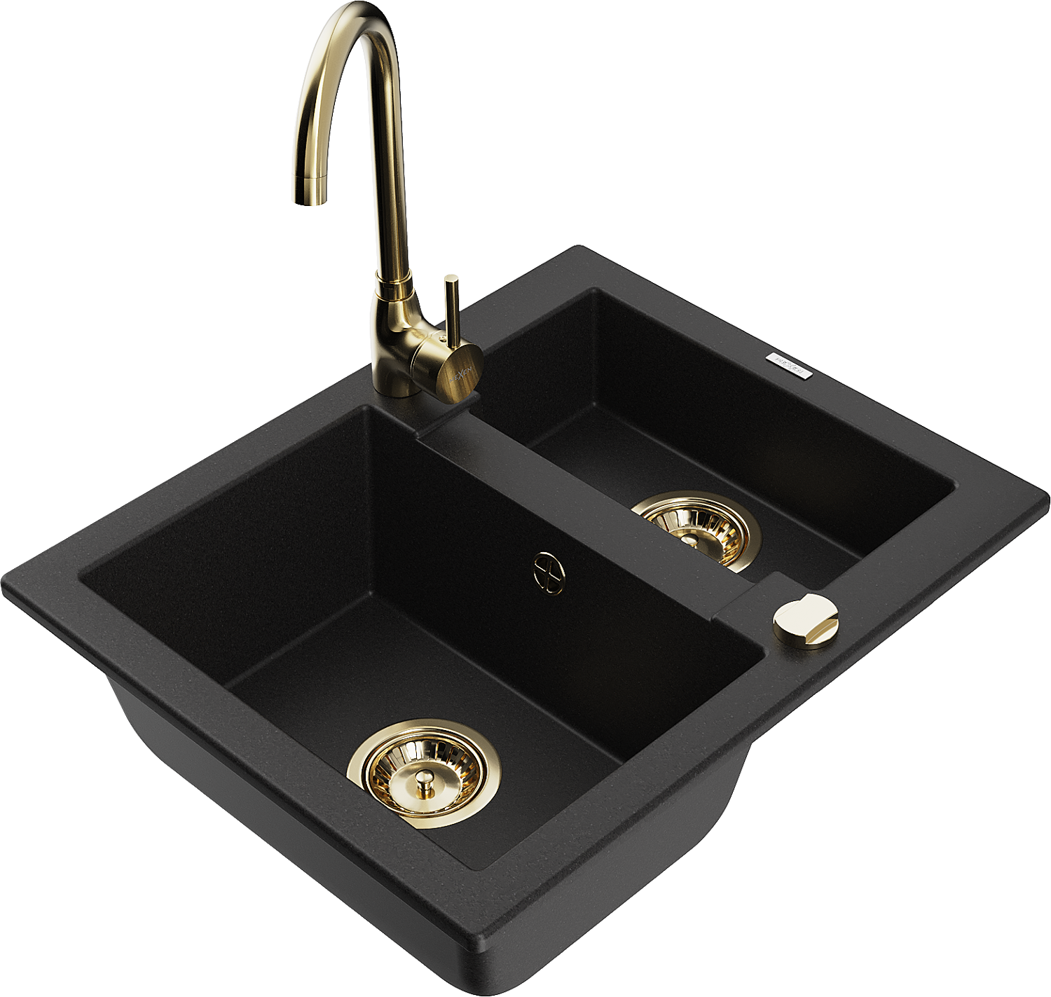 Mexen Carlos granitinis virtuvės kriauklė 1,5 skyrių su virtuvės maišytuvu Telma, juoda - 6518-77-670200-50