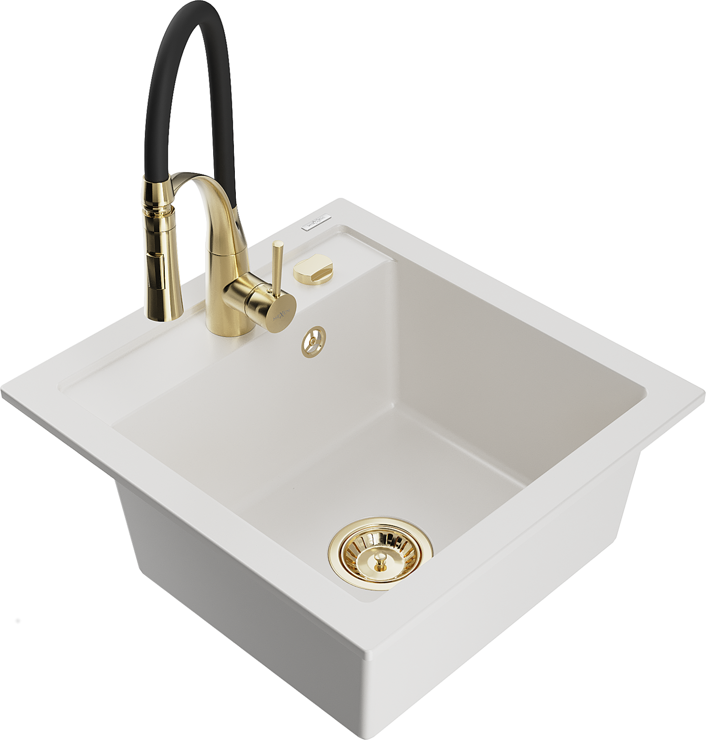 Mexen Vito vienos kameros granitinė plautuvė su virtuvės maišytuvu Aster, baltas - 6503-20-73450-57-B