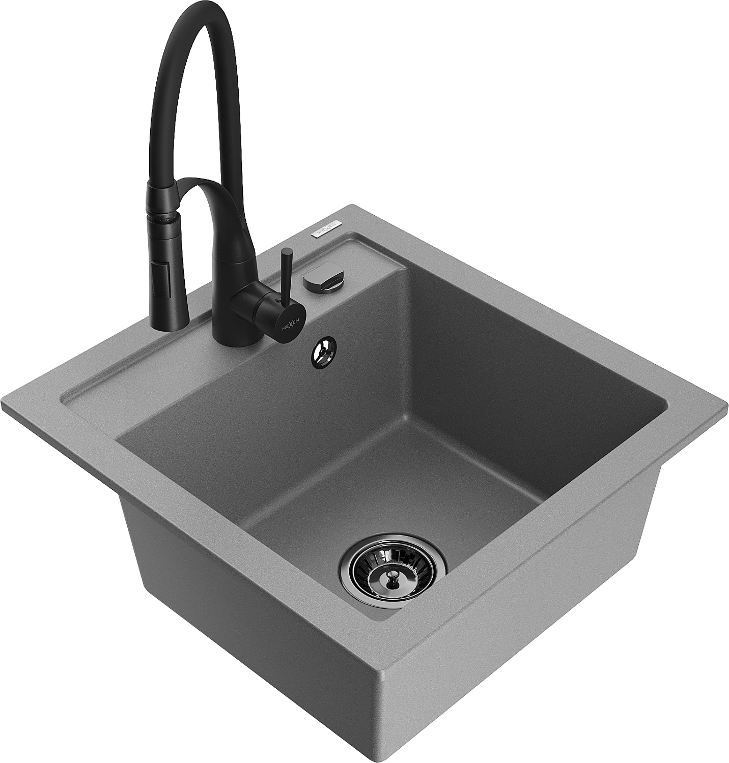 Mexen Vito granito virtuvės kriauklė su 1 kamera ir virtuviniu maišytuvu Aster, pilkas - 6503-71-73450-70-B